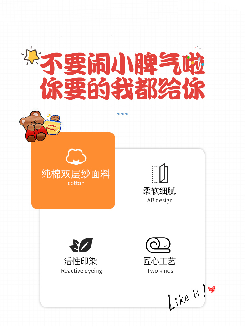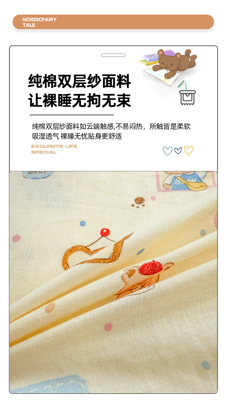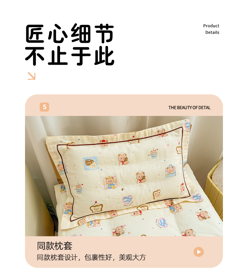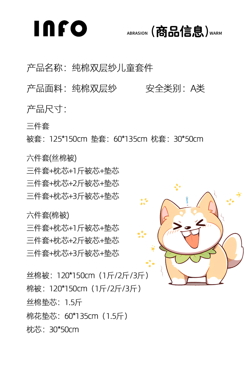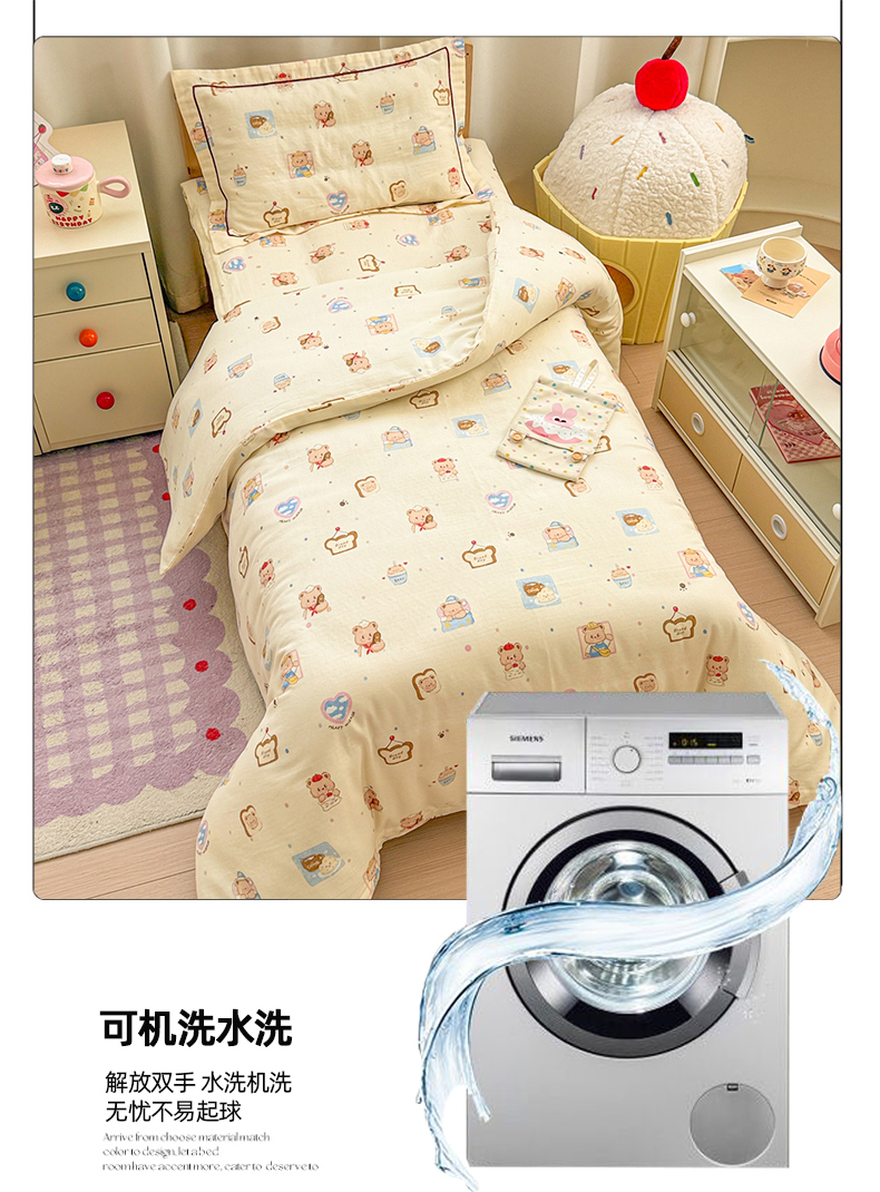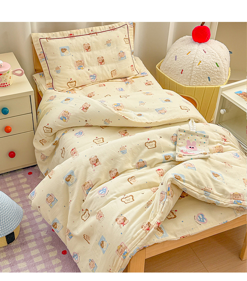 自然醒A类幼儿园全棉双层纱套件三件套六件套纯棉儿童被褥宝宝午睡床品JY