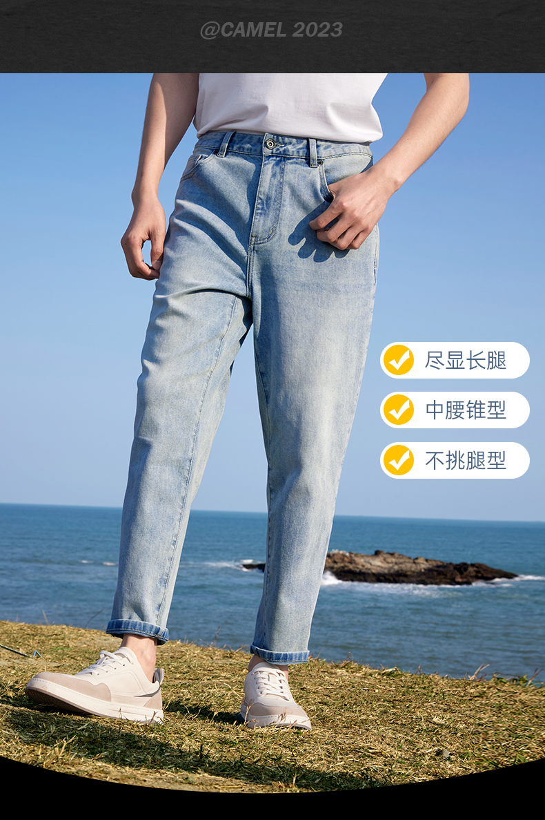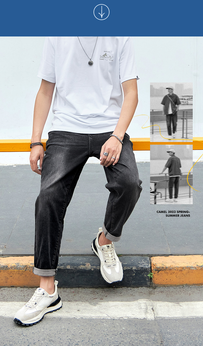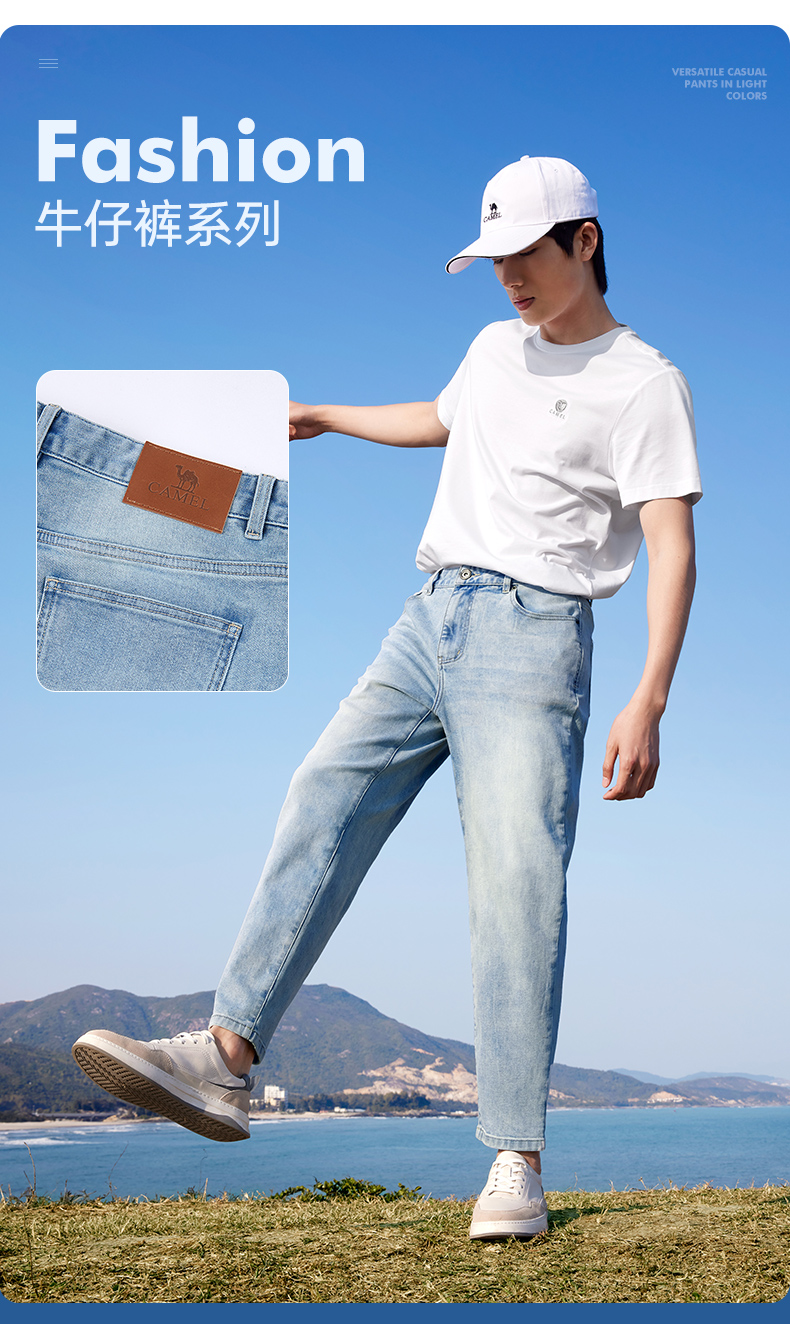 骆驼2025春夏季牛仔裤男士宽松薄款直筒锥形美式浅色百搭休闲长裤 M13BA1S104