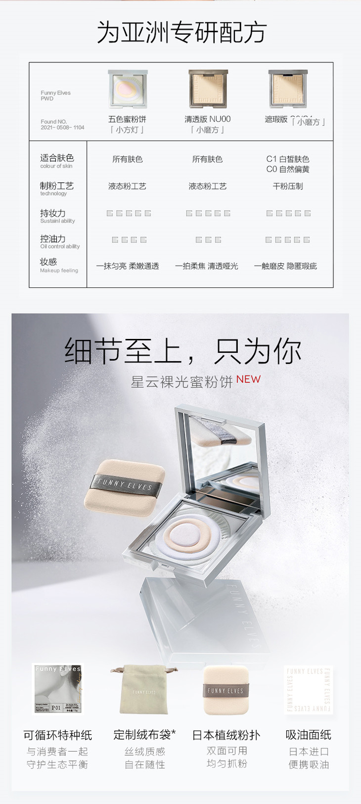 方里FE五色星云裸色蜜粉饼NU01通透色