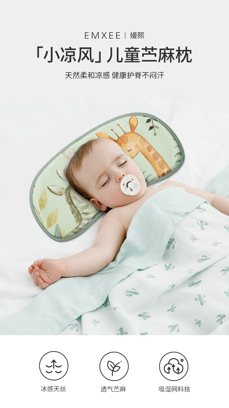 【夏日凉席】嫚熙苎麻枕头新生婴儿云片枕天然健康宝宝抗螨枕0-12个月