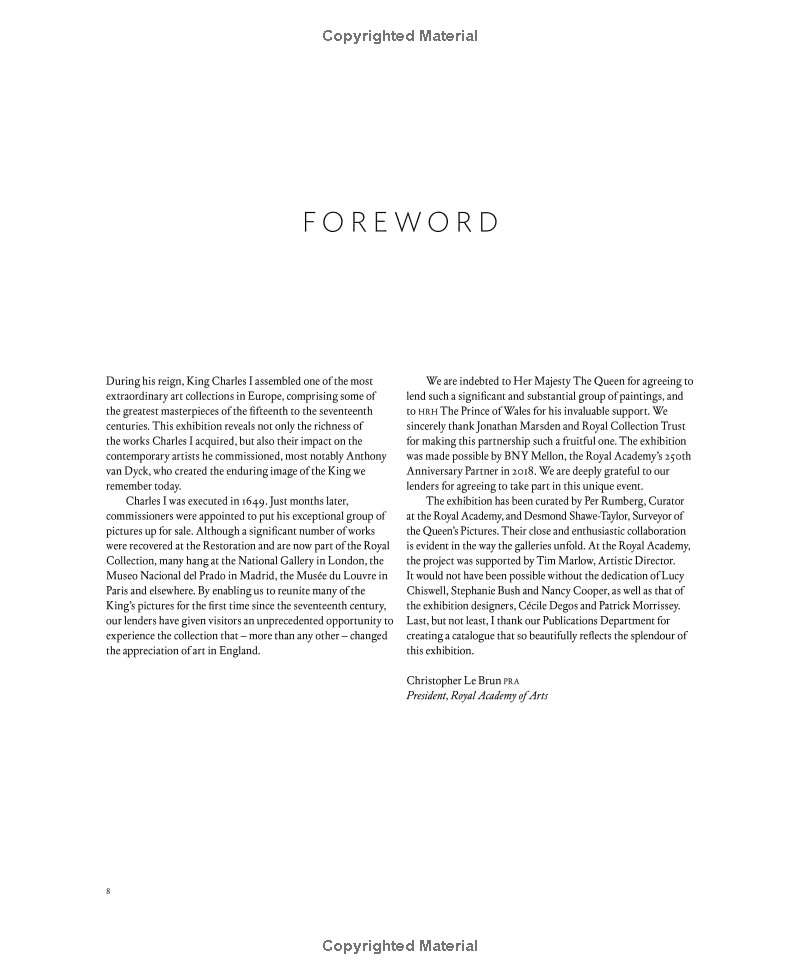 Charles I: King and Collector explores the origins of this extraordinary collection, the way it was assembled and what it came to represent. Authoritative essays provide a revealing historical context for the formation of the King’s taste. They analyze key areas of the collection, such as Italian Renaissance art, and how the paintings that Charles collected influenced the contemporary artists he commissioned.