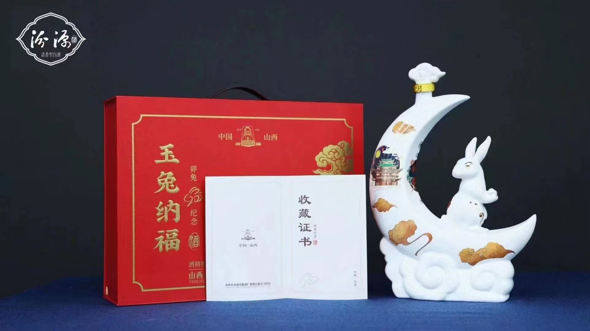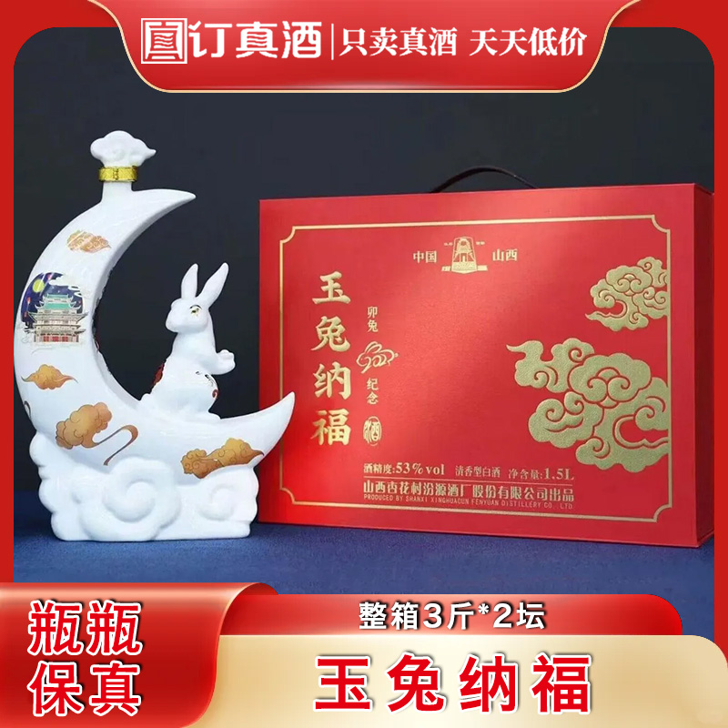 山西杏花村汾源玉兔纳福卯兔纪念酒 53度清香型白酒 整箱3斤*2坛包邮