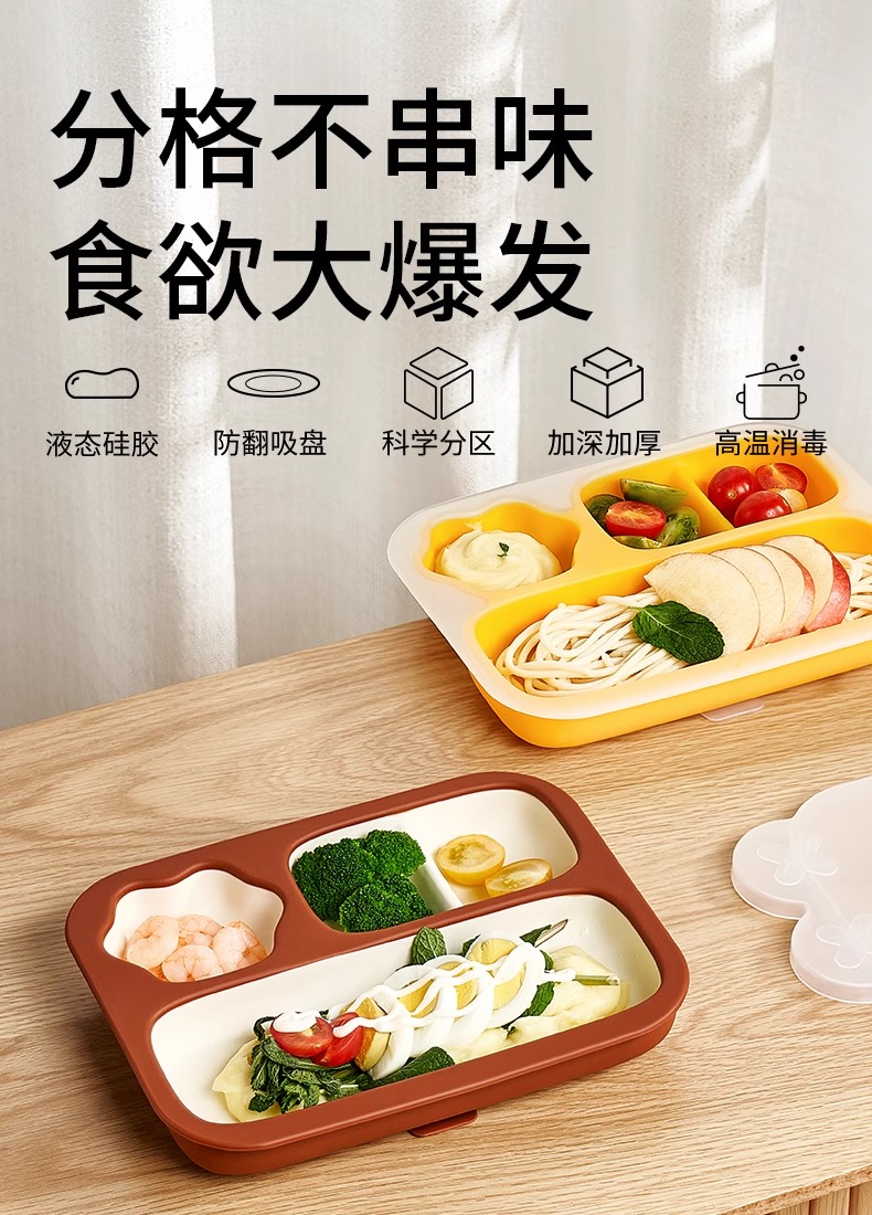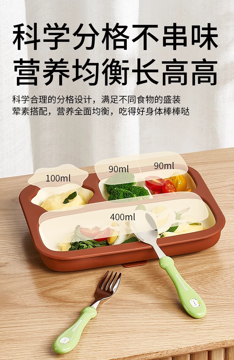 科巢宝宝餐盘吸盘一体式分格盘婴儿硅胶吸管碗吃饭训练勺儿童餐具套装