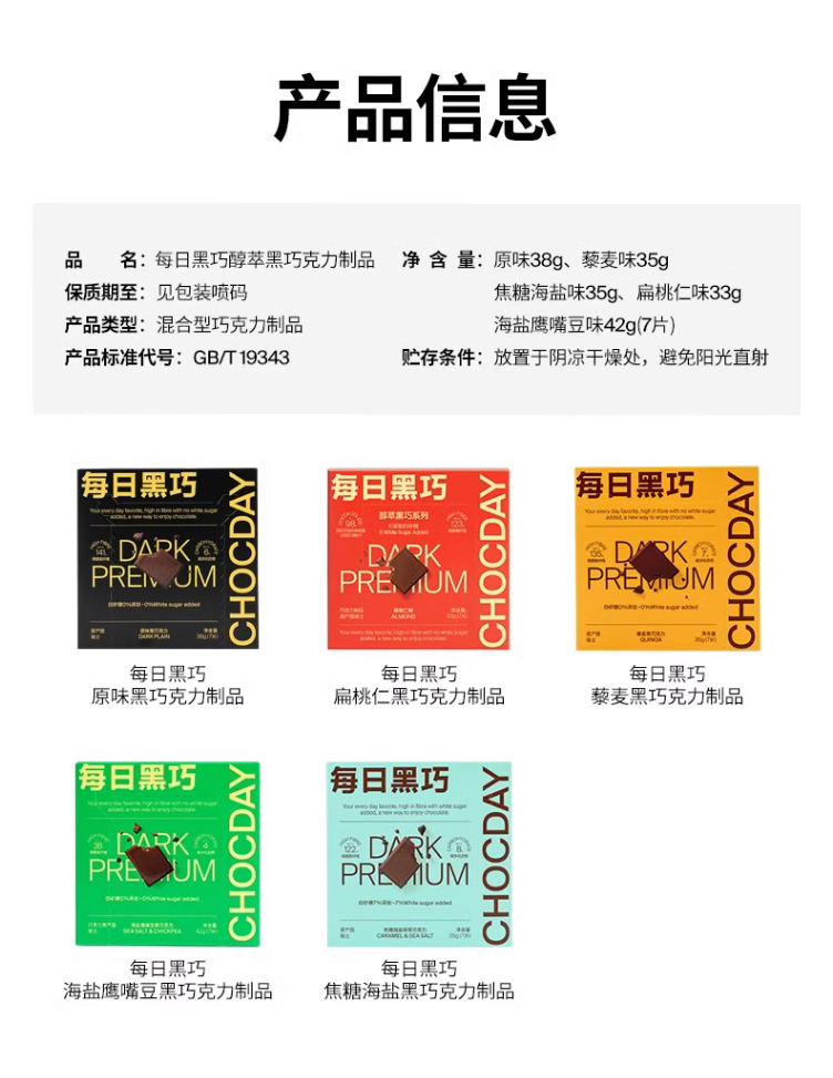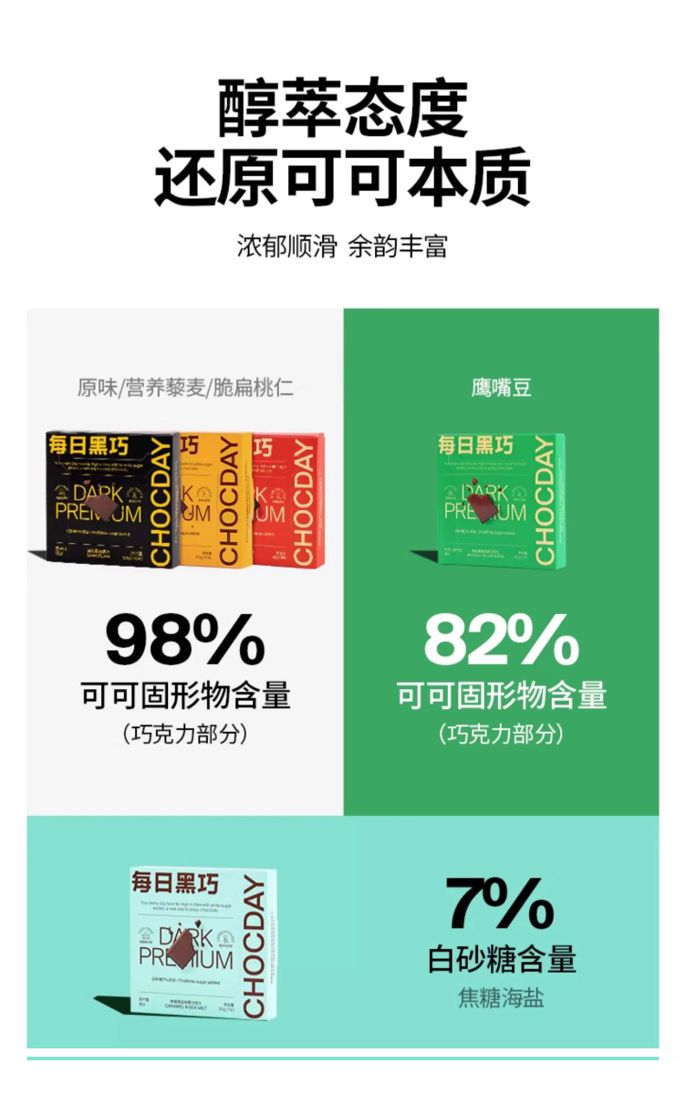 【4.6积分当钱花】每日黑巧4盒19.9(4盒黑巧随机每盒35克7片/2盒黑巧随机不同口味+2盒每日黑巧玉米脆)限2024年9到12月随机