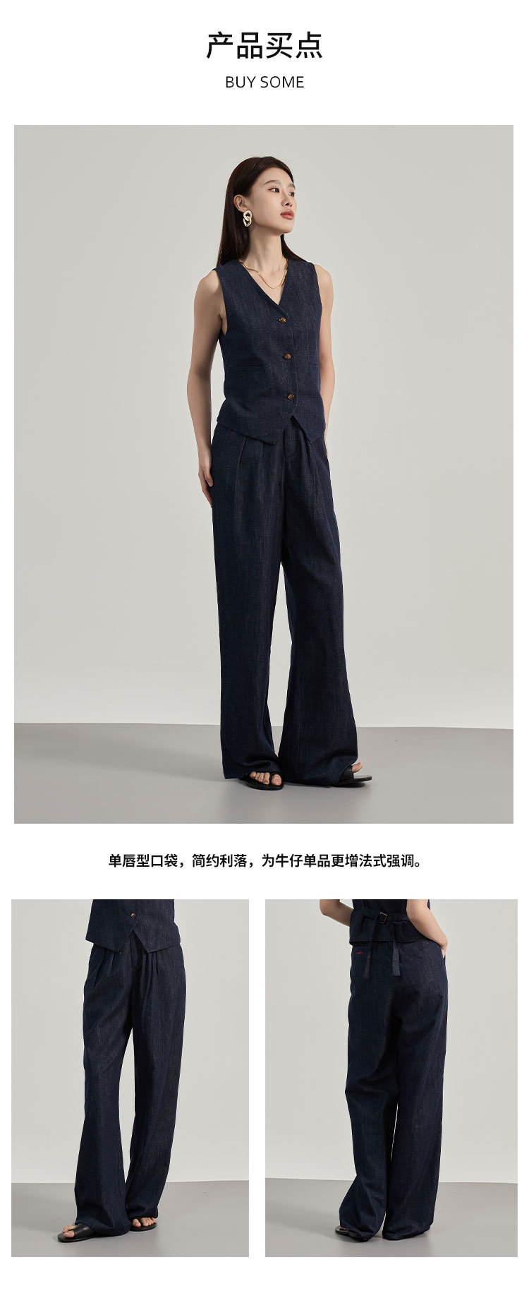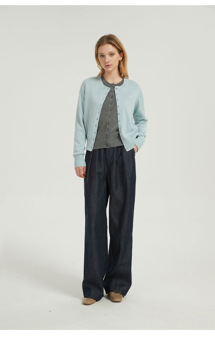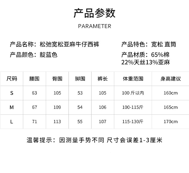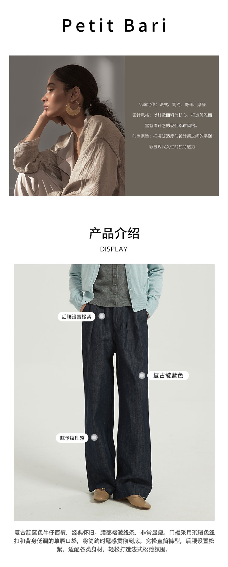 【2件9折】【Petit Bari】松弛宽松汉麻牛仔西裤 女士后腰松紧直筒长裤
