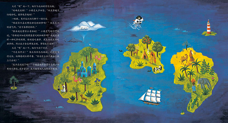 在孩子的童年时期,噩梦真是一个困扰大家的问题。连书中的国王都不例外,他找了许多医生为小公主诊治,还派手下四处寻访名医巫师,可惜一无所获。后来他亲身前去寻找,历尽艰难万险,终于找到了吃噩梦的小精灵。