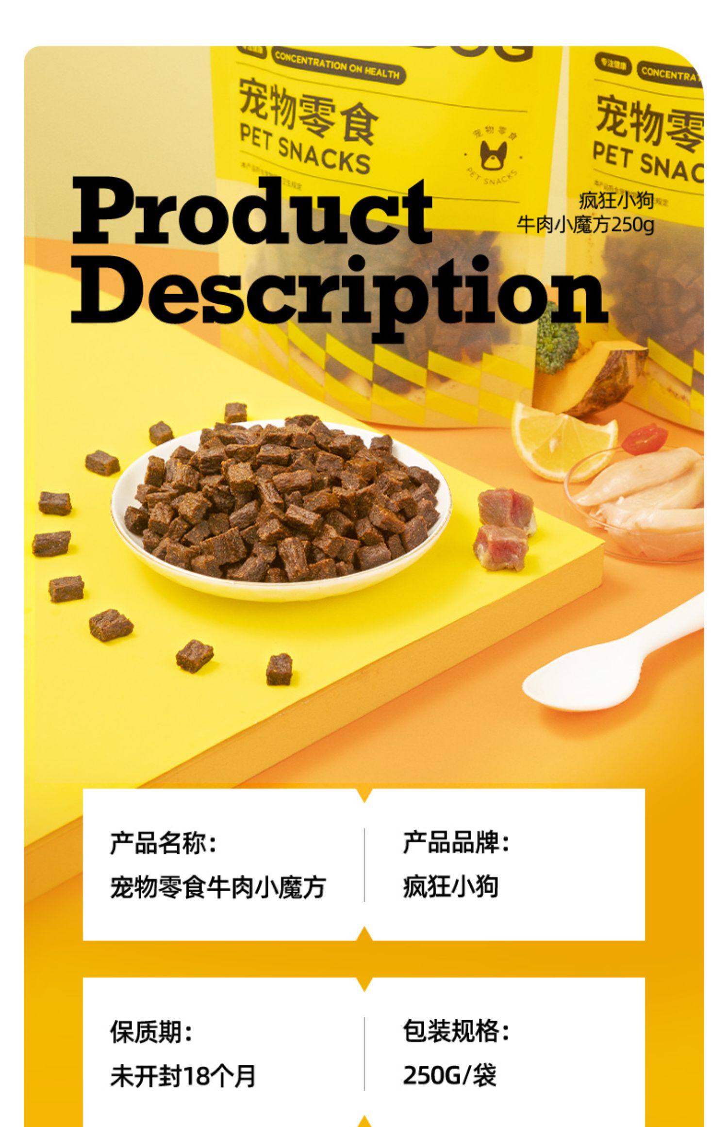 疯狂小狗 宠物零食 牛肉小魔方 250g 靓毛淡泪痕强健骨骼