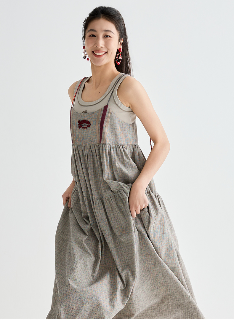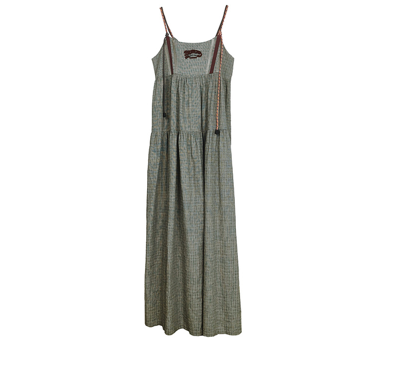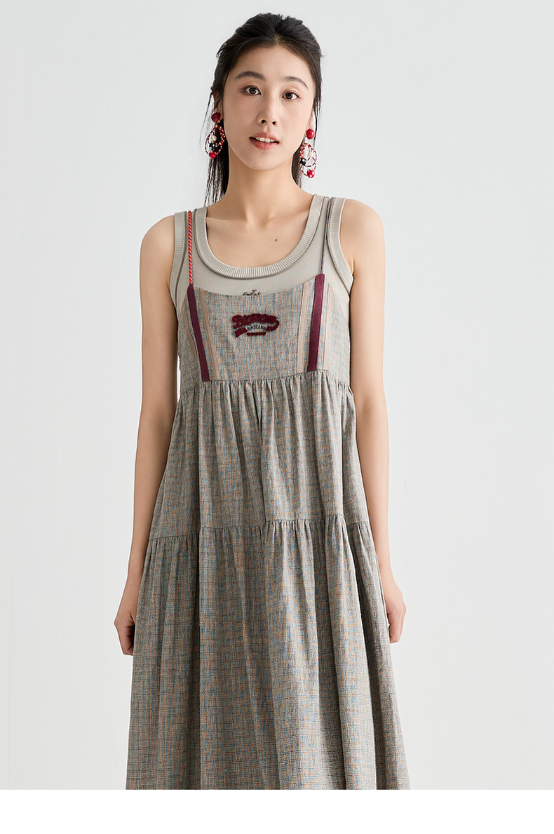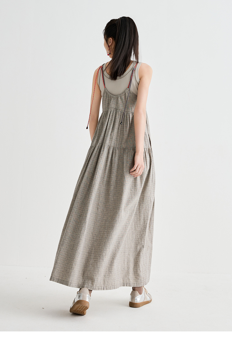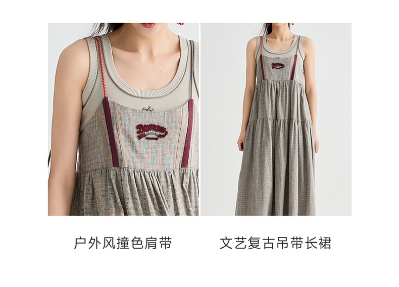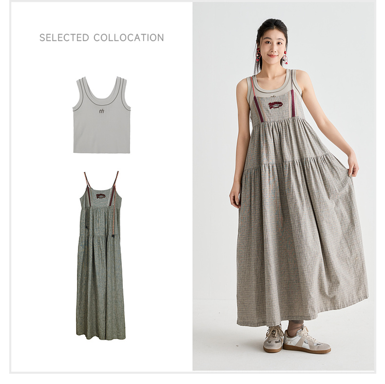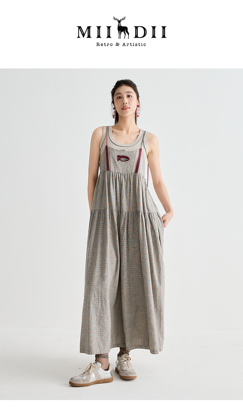 谜底连衣裙无袖女2025夏季新品复古风度假吊带裙A型长裙252ML0636