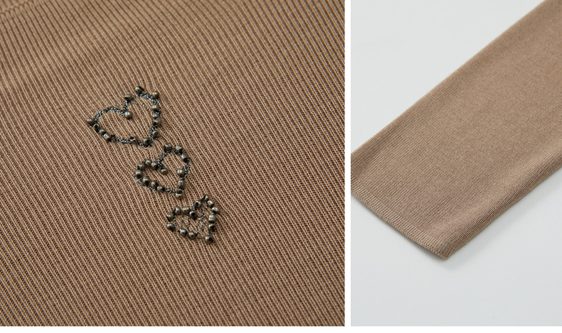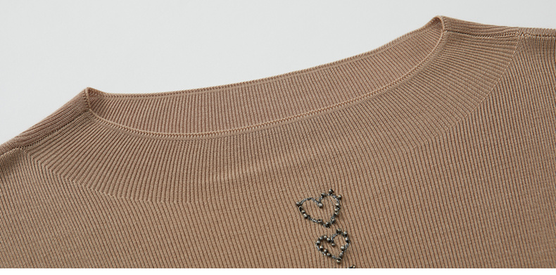 谜底套头针织衫女2022秋简洁爱心钉珠一字领针织打底衫223MZ1320