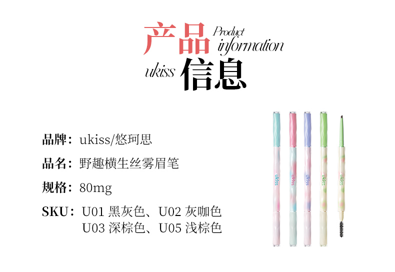 【专区59元任选3件】【野生丝雾 野性眉感】UKISS眉笔持久防水不脱色易上色新手女适用根根分明野生眉粉眉膏