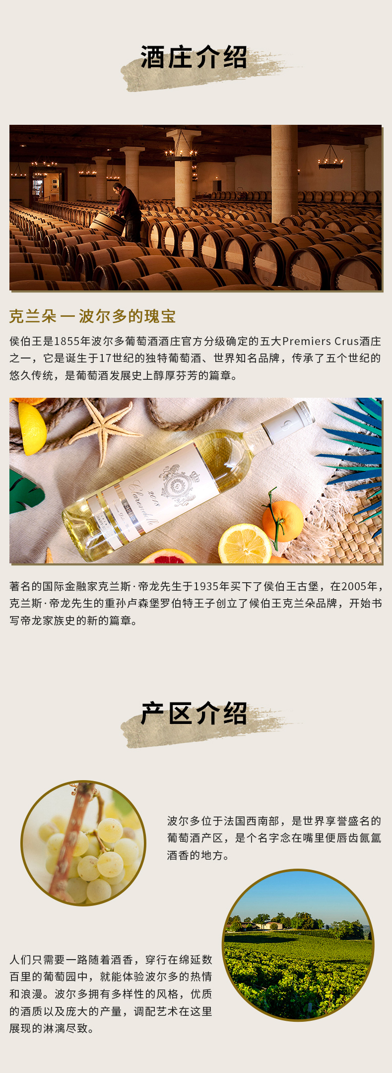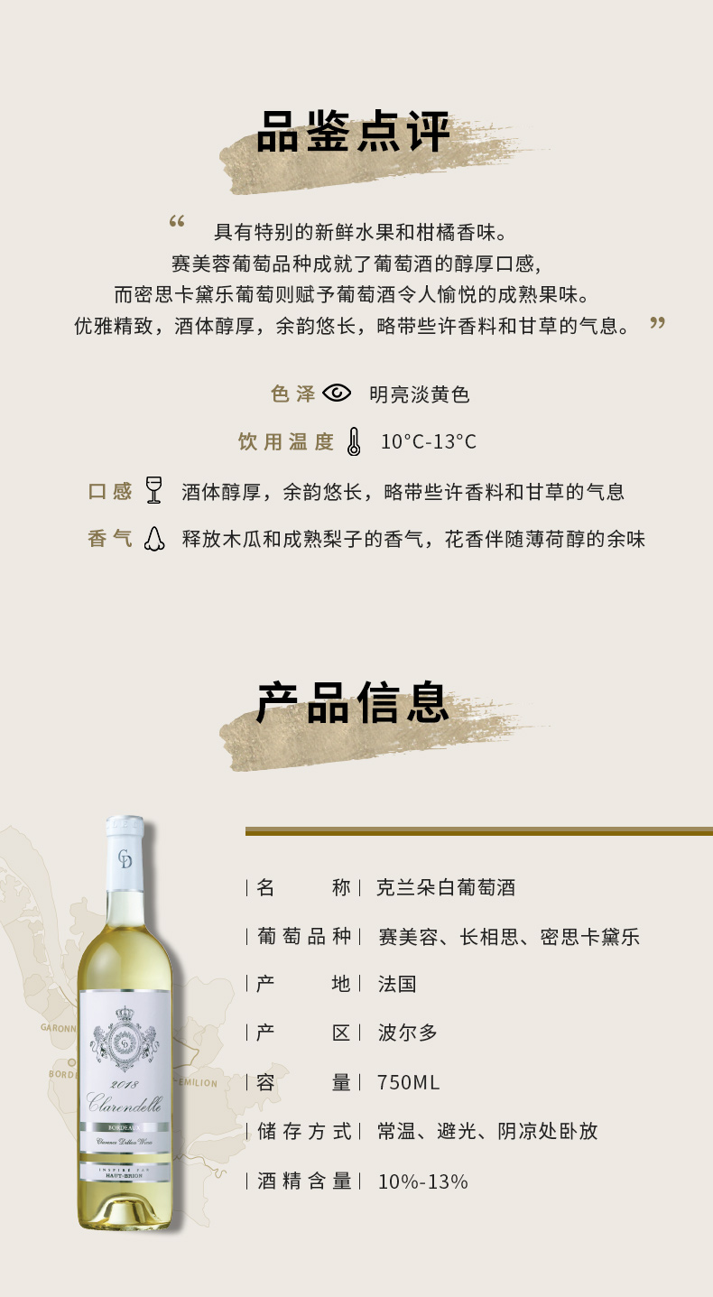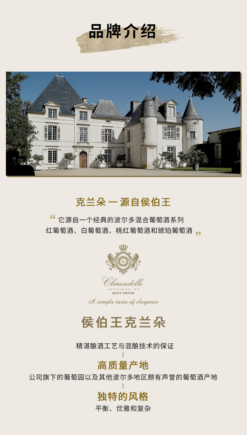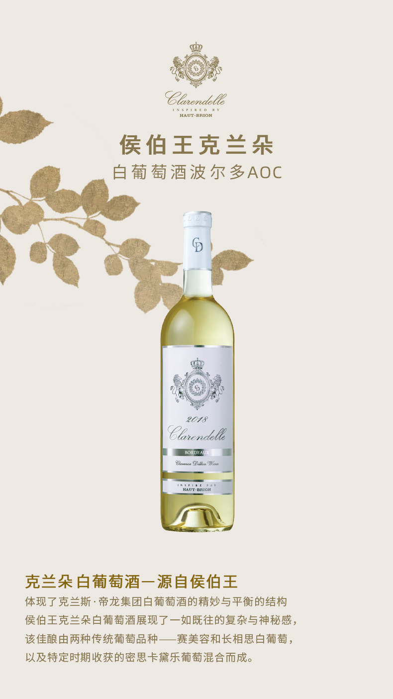 进口法国波尔多产区侯伯王克兰朵白葡萄酒750ml包邮精选葡萄酒