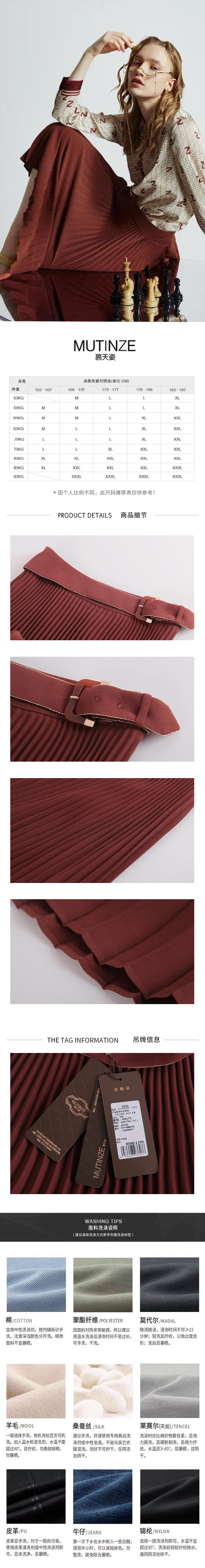 慕天姿文艺减龄A字百褶半裙 69175
