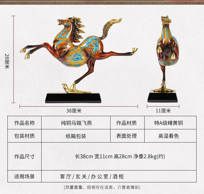 E-YM-FK153 彩铜 马踏飞燕纯铜摆件(370*100*270)