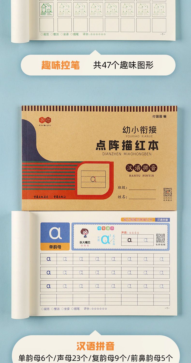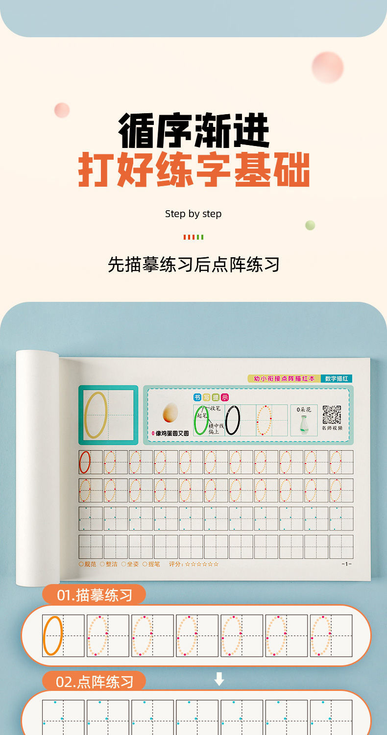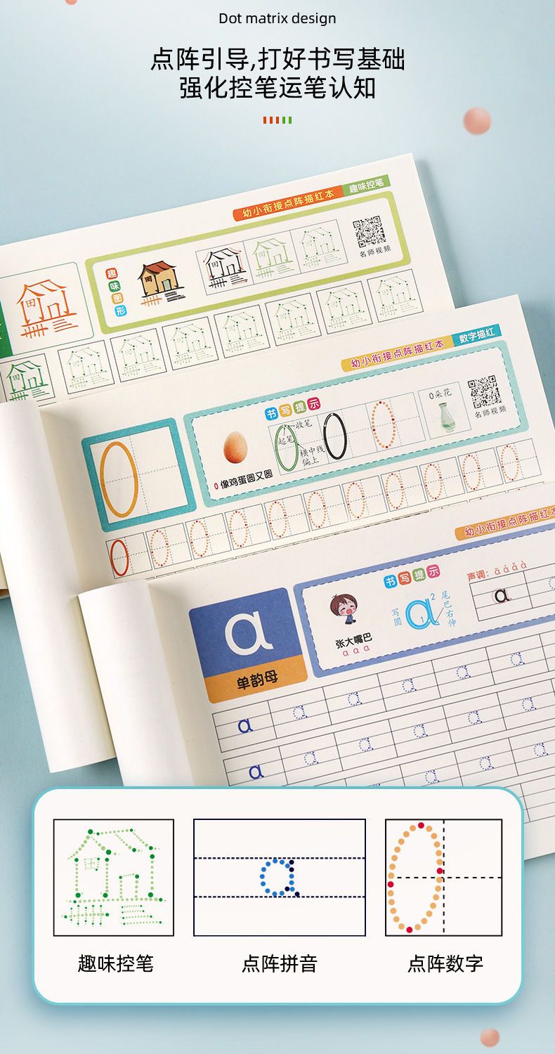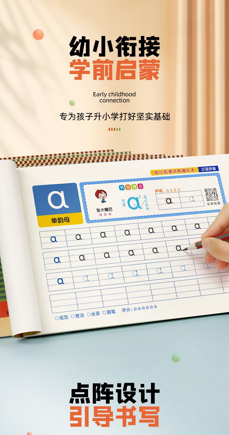 【零基础学写字】幼小启蒙练字拼音字母数字描红练字帖点阵练字帖(含视频)