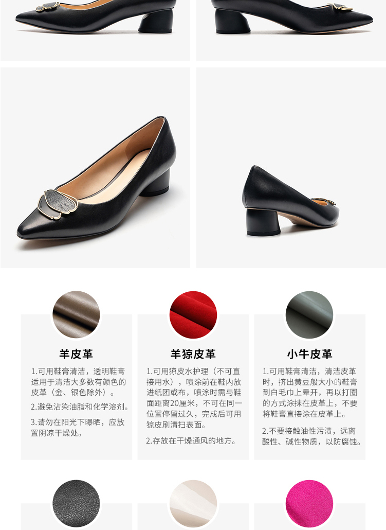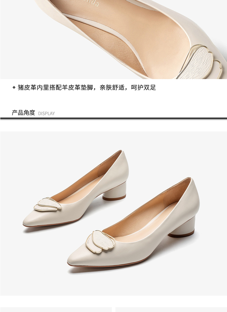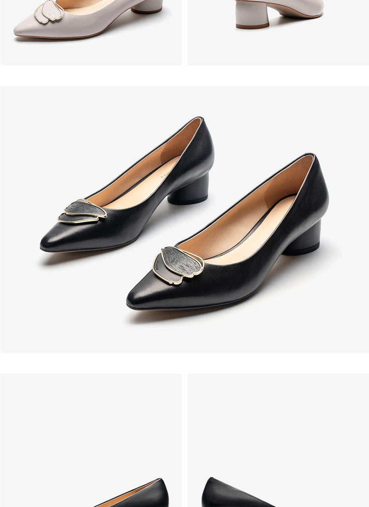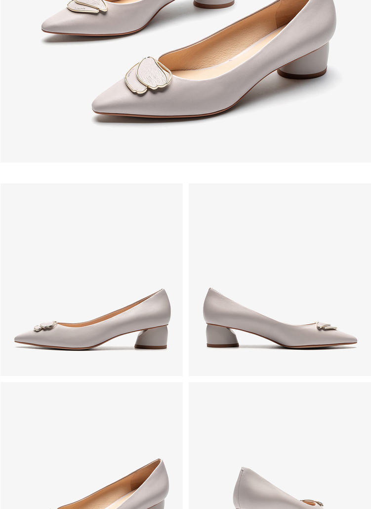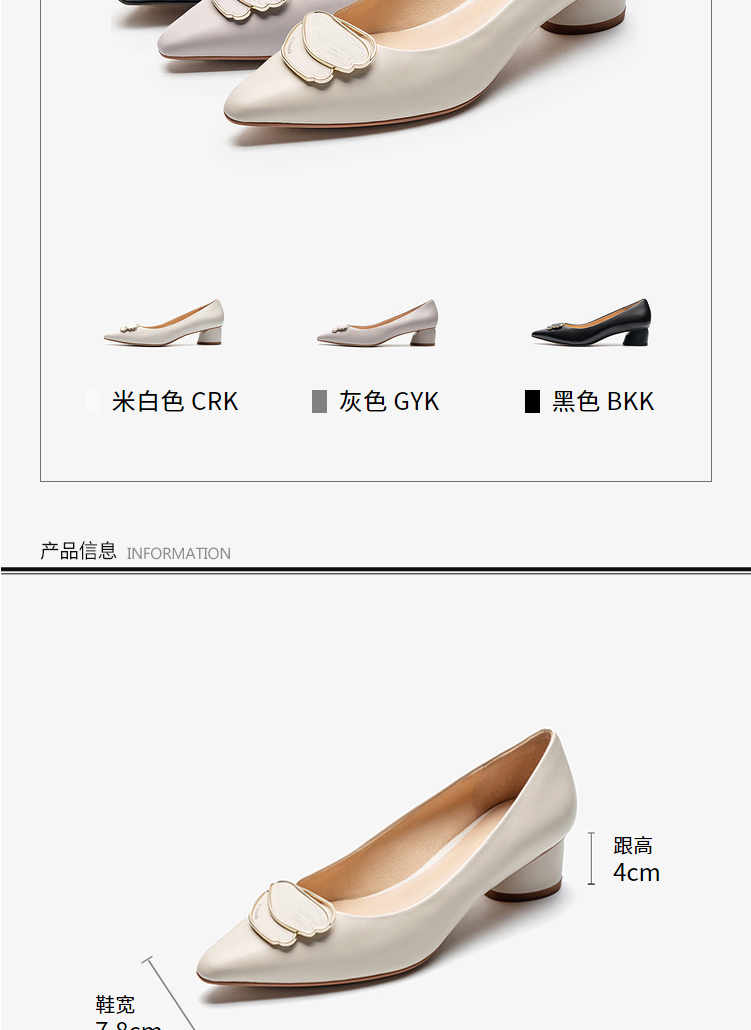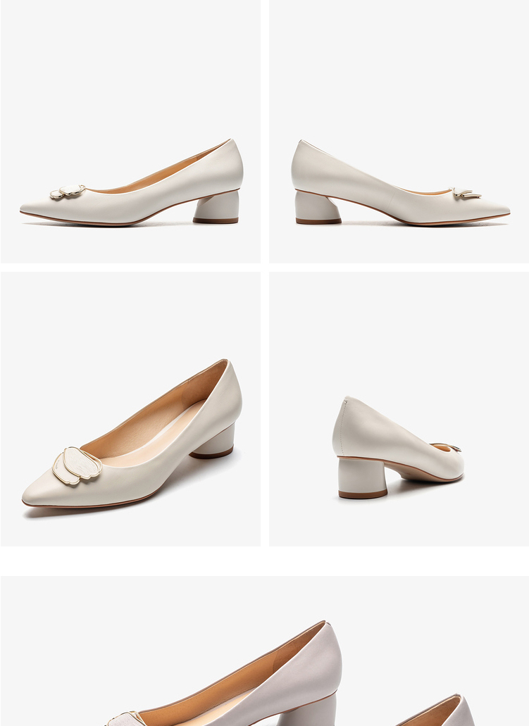 莱尔斯丹2022春夏新款优雅方头饰扣粗跟女单鞋3M40231