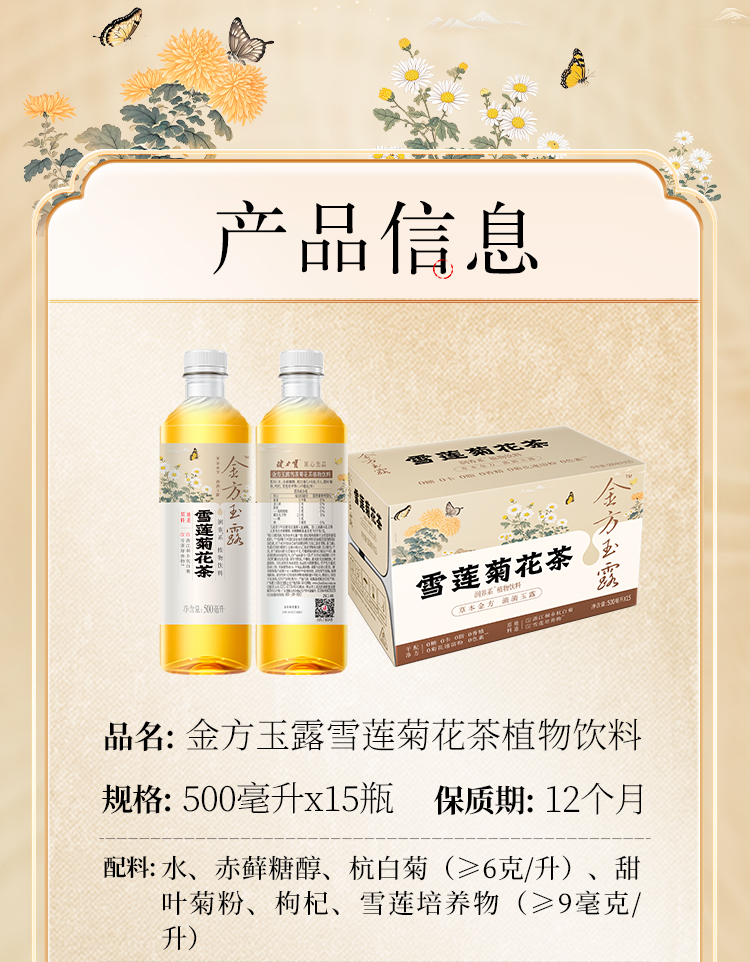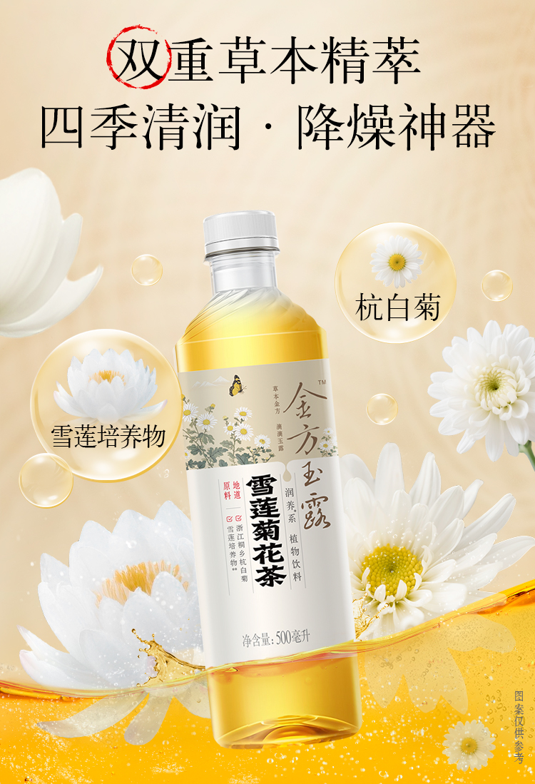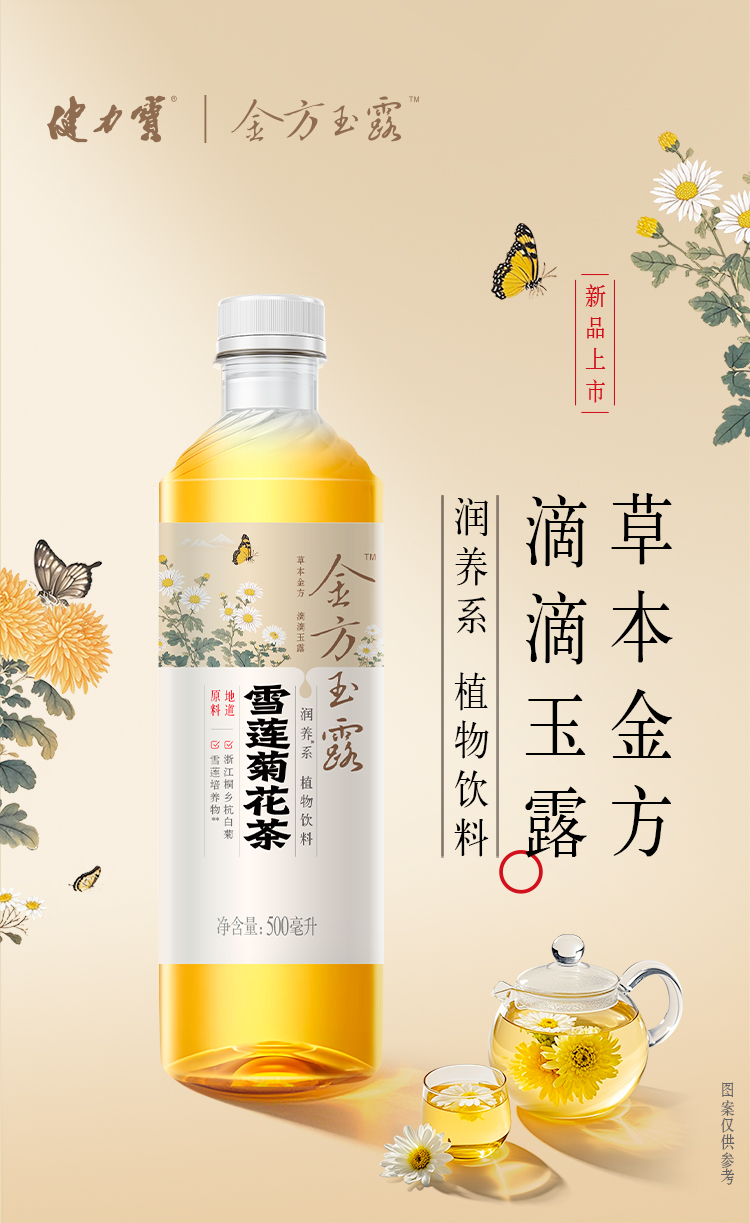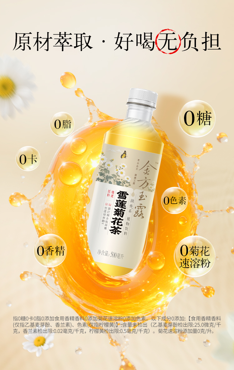 健力宝雪莲菊花茶植物饮料500ml*15瓶装 0糖0脂0卡清润去火茶