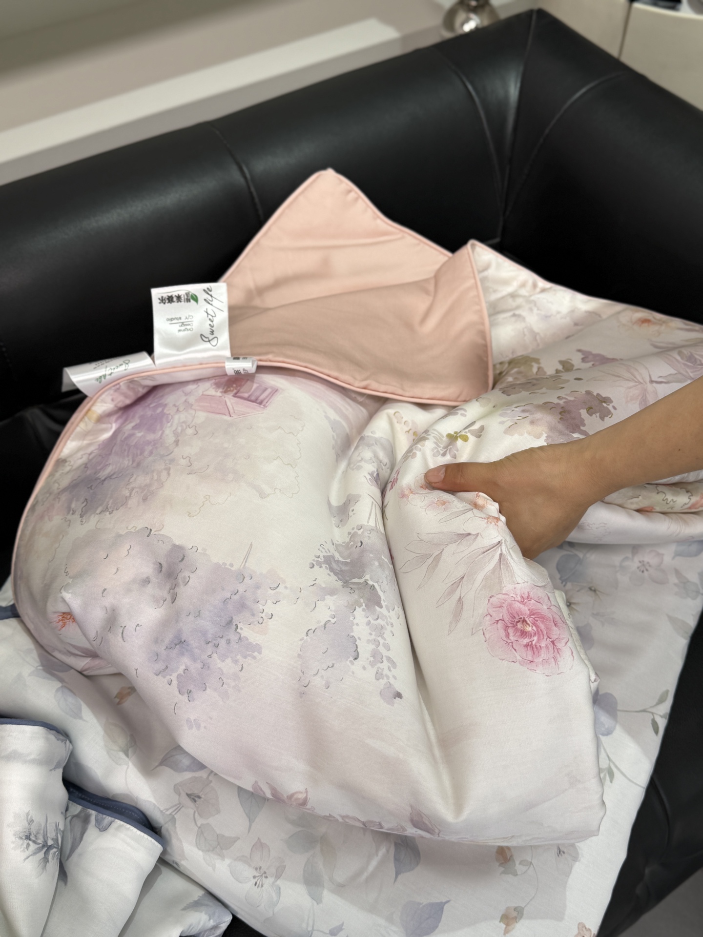 甄选奥地利进口兰精天丝,大公司研发定织凉感天丝面料,进口莱赛尔纤维比普通天丝更具凉感,柔软细腻,保证了面料更好的品质和稳定性,已经把天丝做到极致,极软、极润的柔滑触感,如真丝般顺滑,凉爽舒适,裸睡超级舒服
