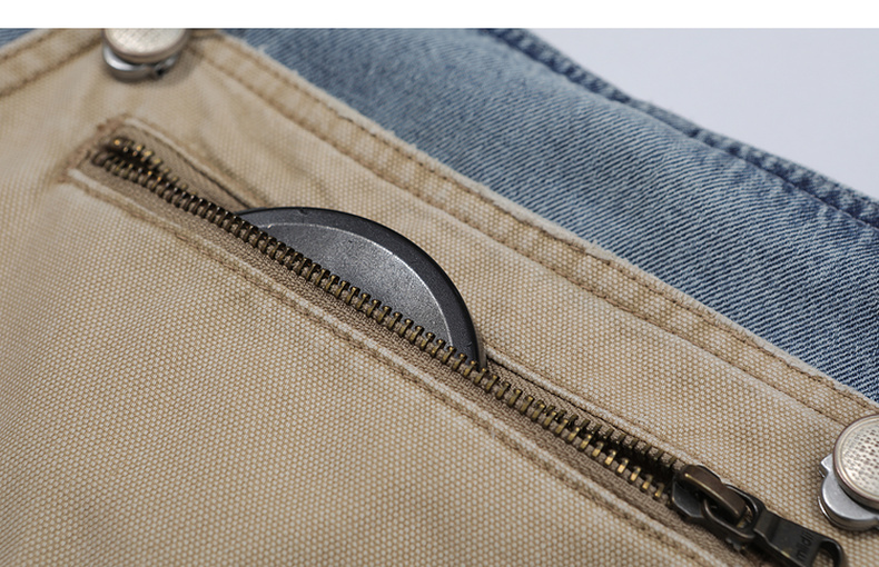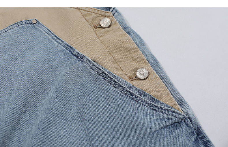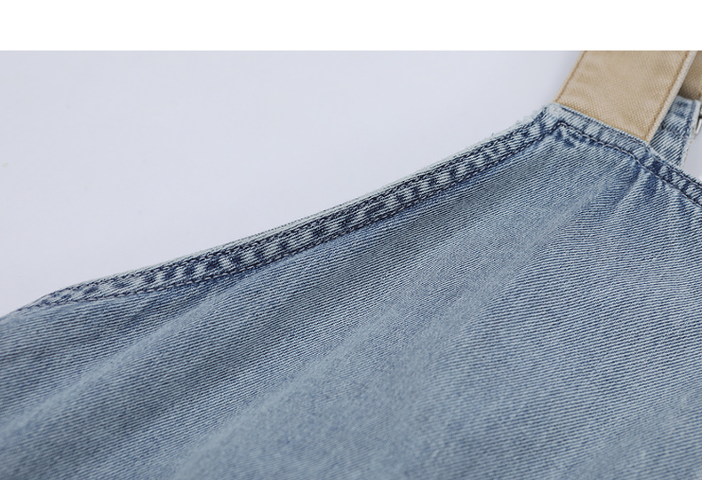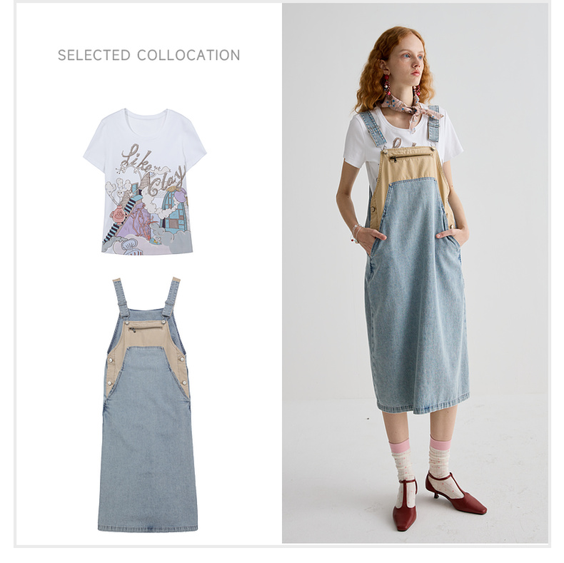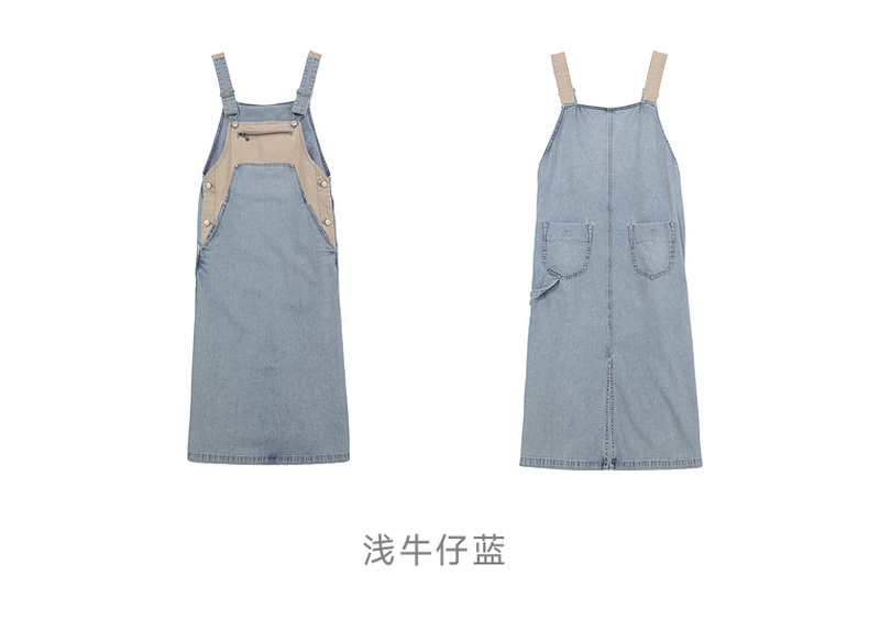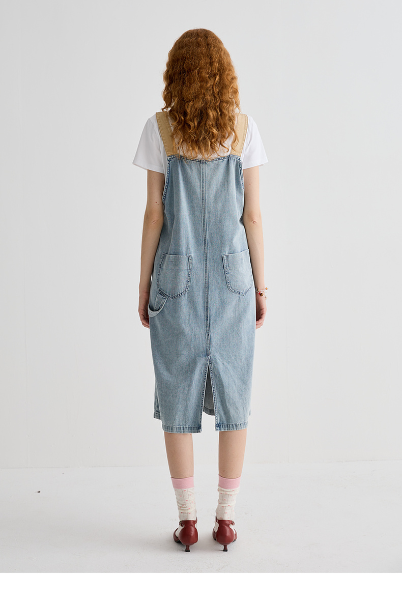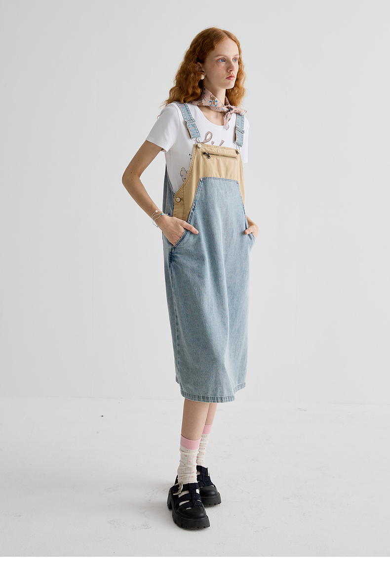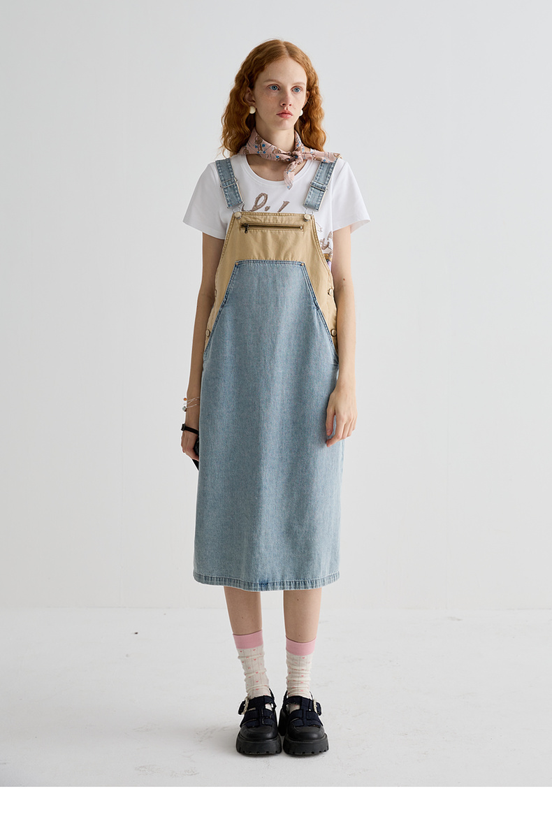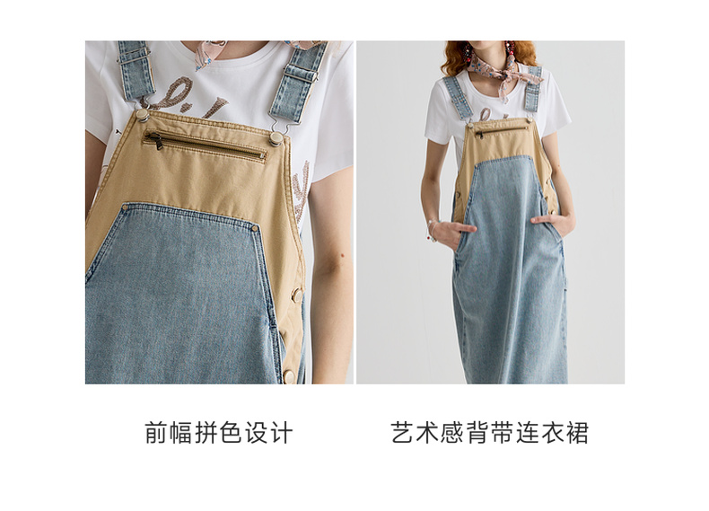 谜底连衣裙女2025夏季新品复古拼色牛仔宽松背带中长裙252ML0512