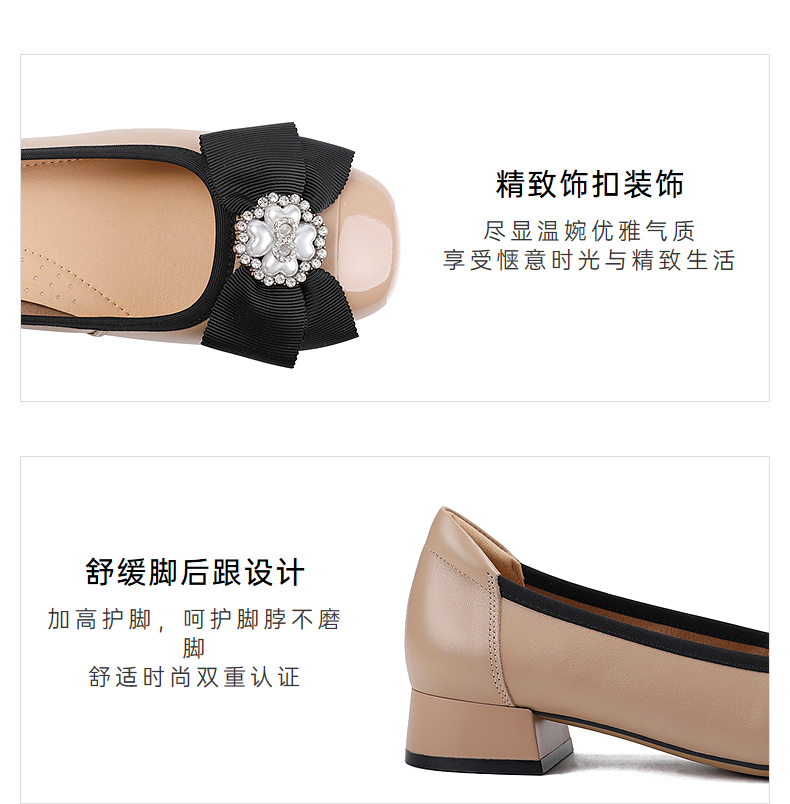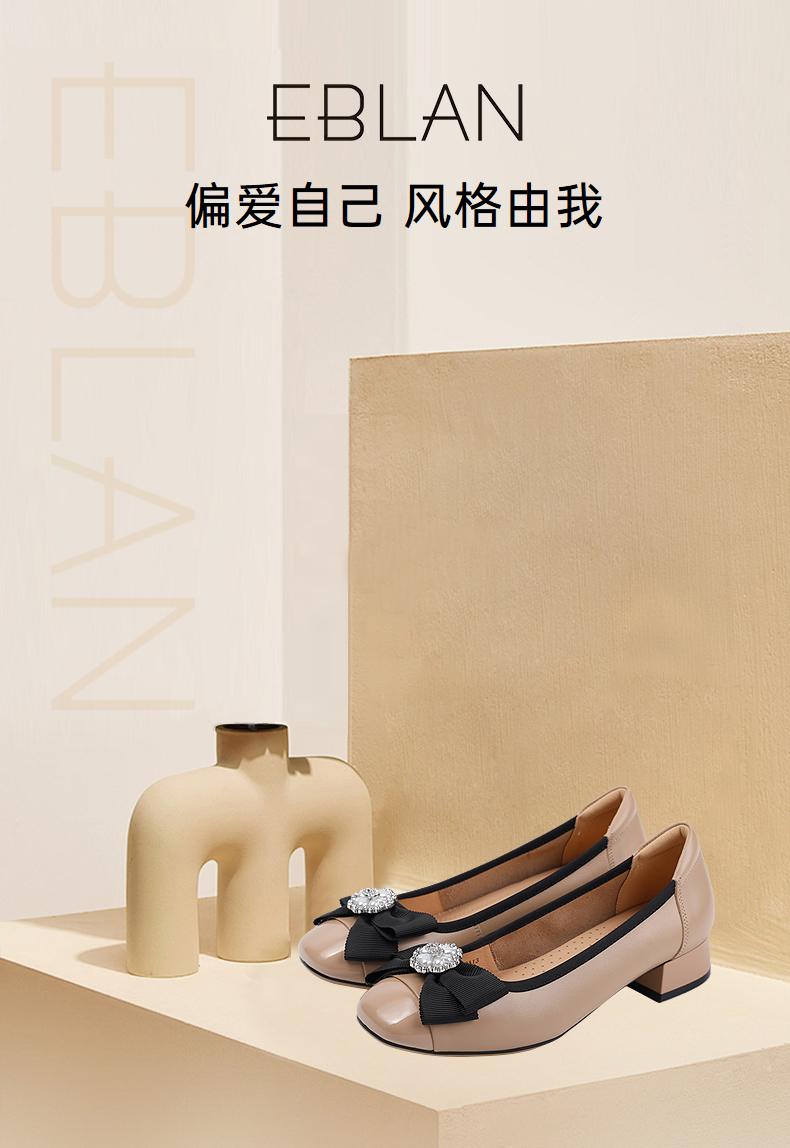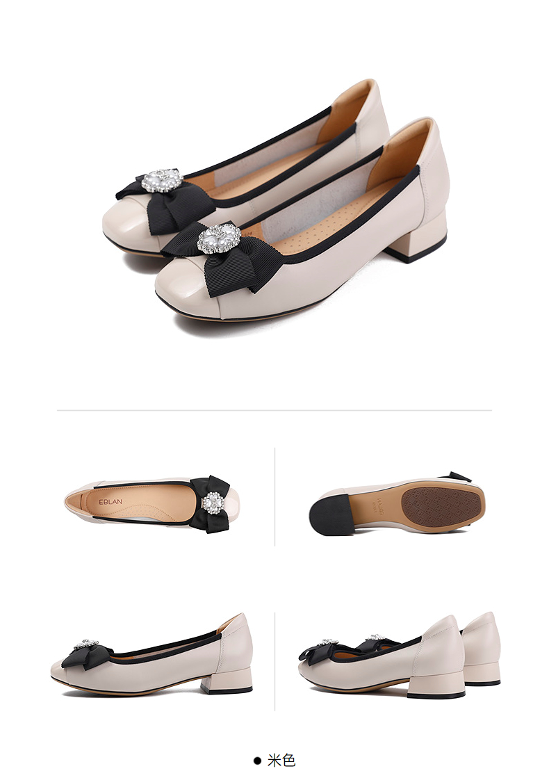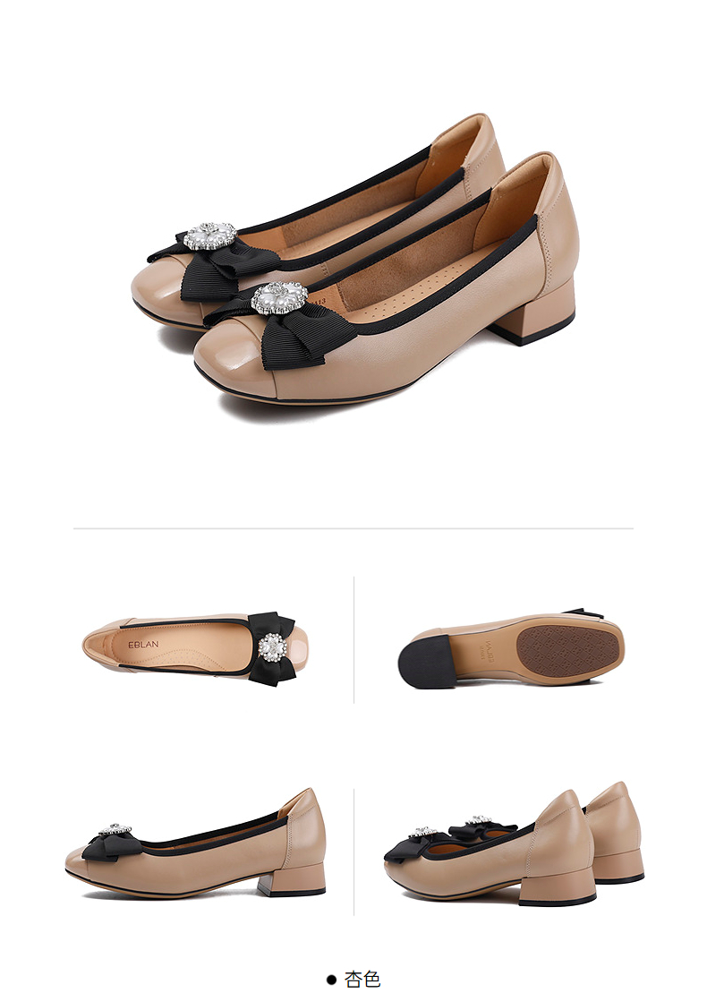 伊伴秋季甄选牛皮鞋面温婉饰扣单鞋B25401720