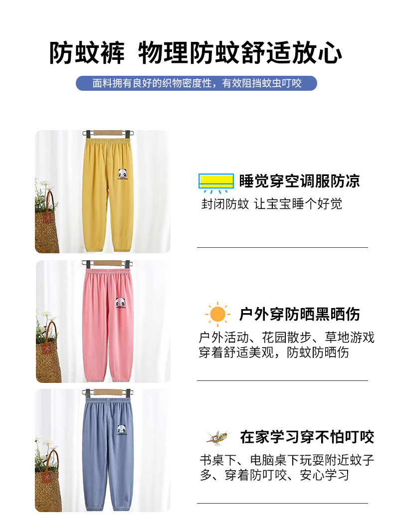 【特价捡漏39.9/2件 】小熊冰丝儿童防蚊裤 A类品质 男女宝宝运动九分裤 冰丝面料夏季穿着凉爽透气