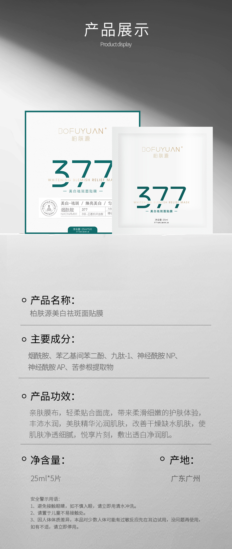 【美白臻颜】柏肤源 377美白祛斑面贴膜