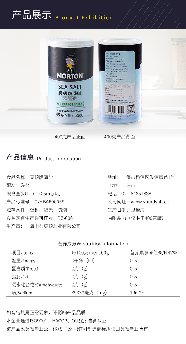 MORTON 莫顿牌未加碘海盐 400g/罐