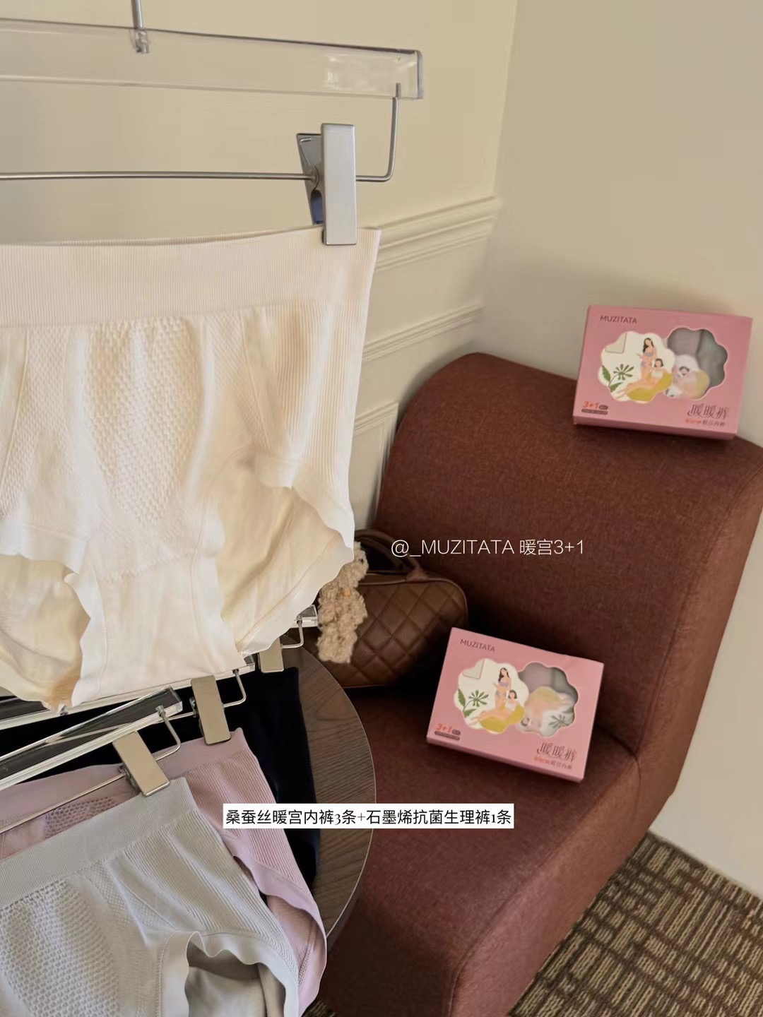 桑蚕丝暖宫裤𝟥条+石墨烯抗菌生理裤𝟣条