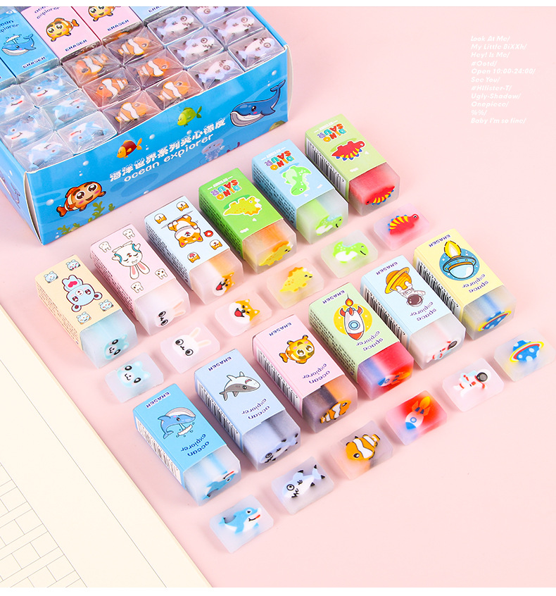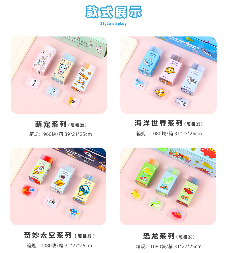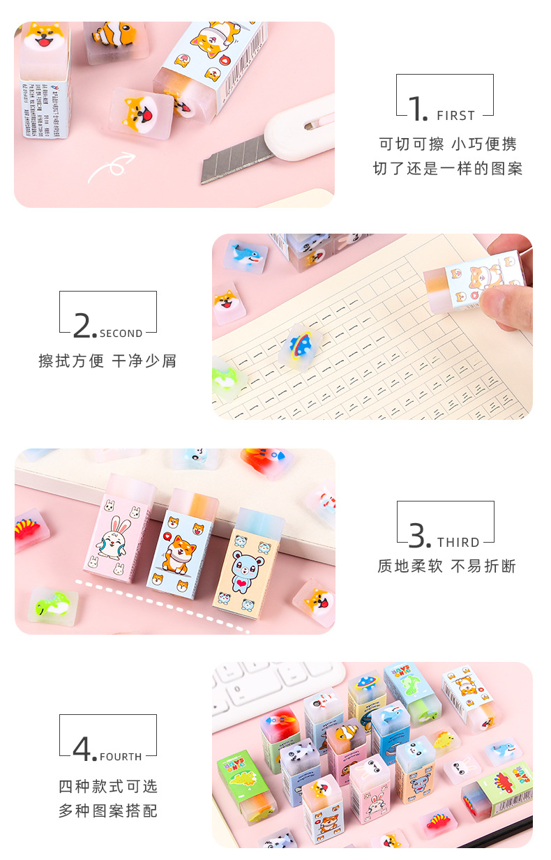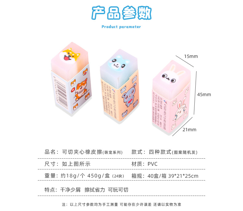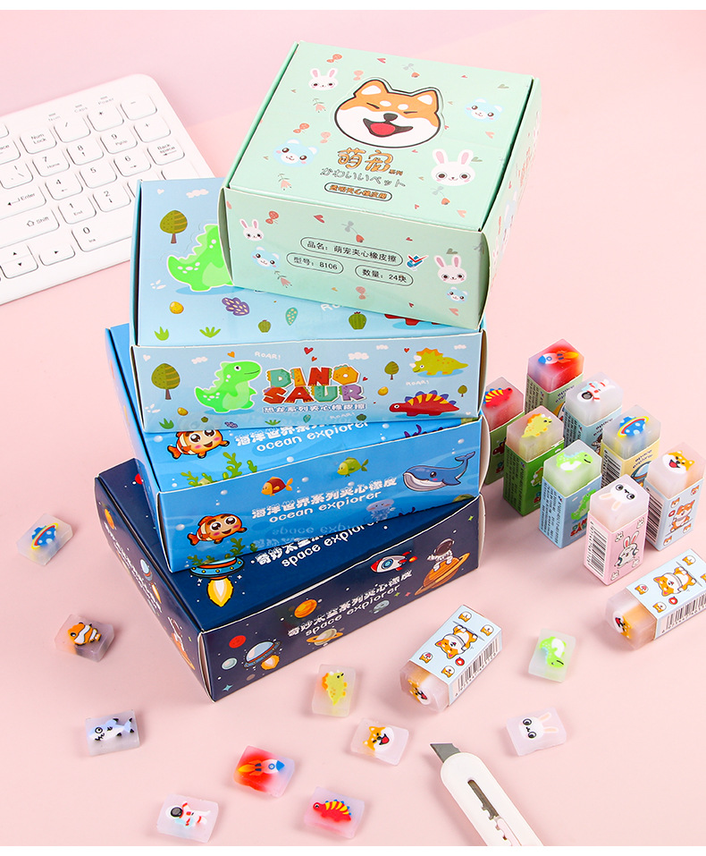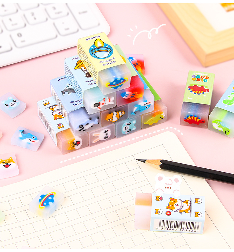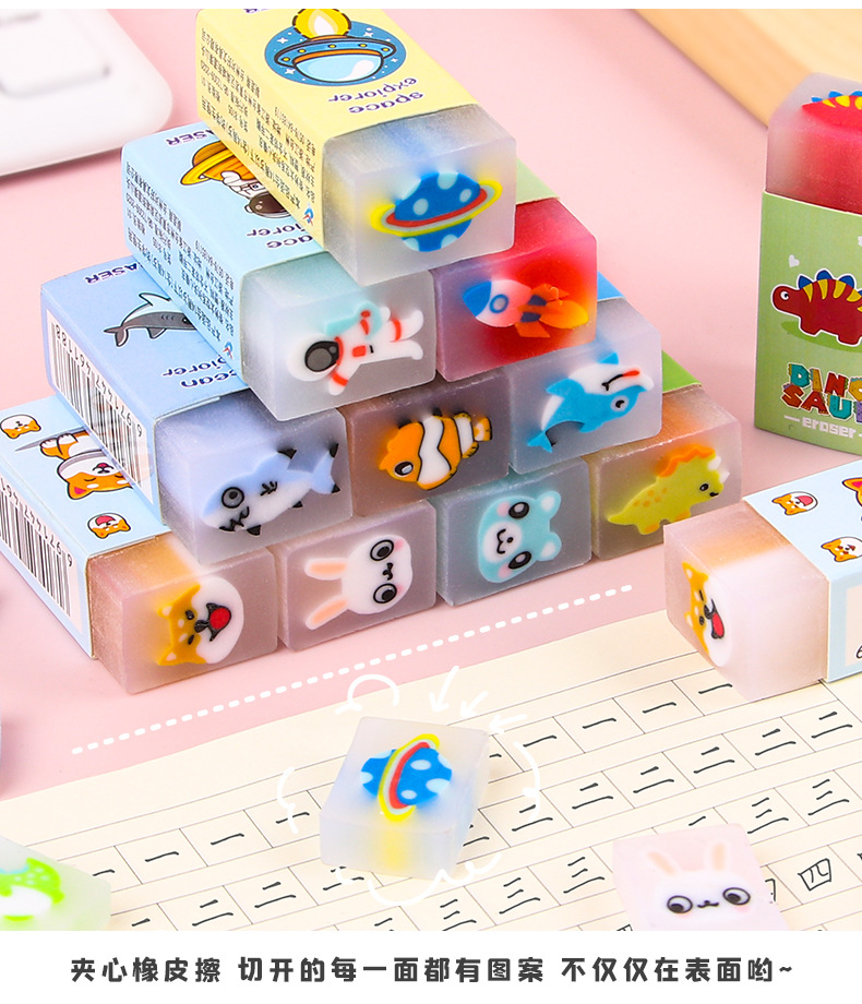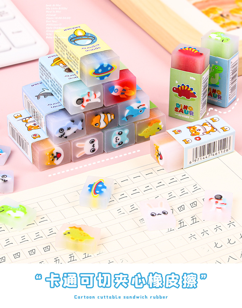 【萌趣可爱夹心橡皮擦!拍1发5!!!】创意卡通橡皮擦,可切橡皮檫,少屑绘画;夹心橡皮擦,萌宠伴你度过美好的绘画时光,擦除烦恼,唤醒创意。天真无邪的孩子们会爱上它,成为你和孩子分享的乐趣!