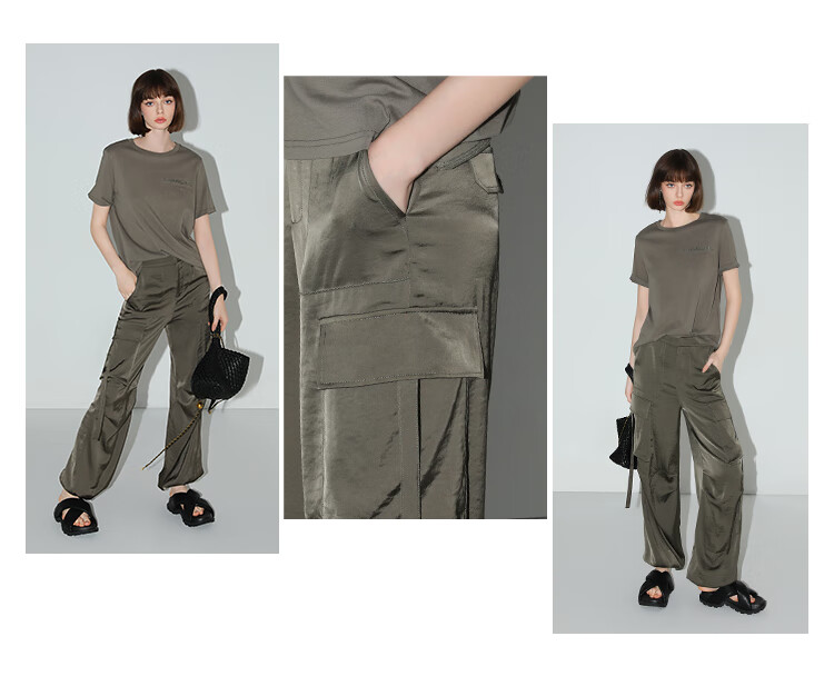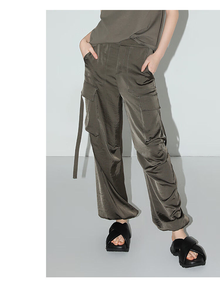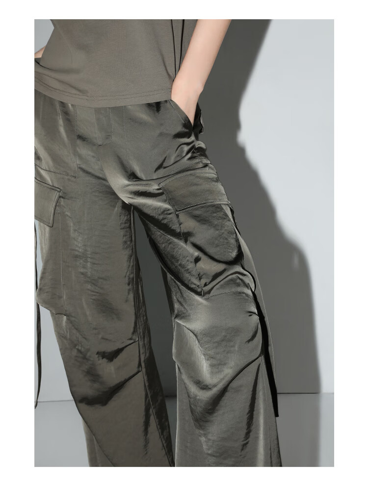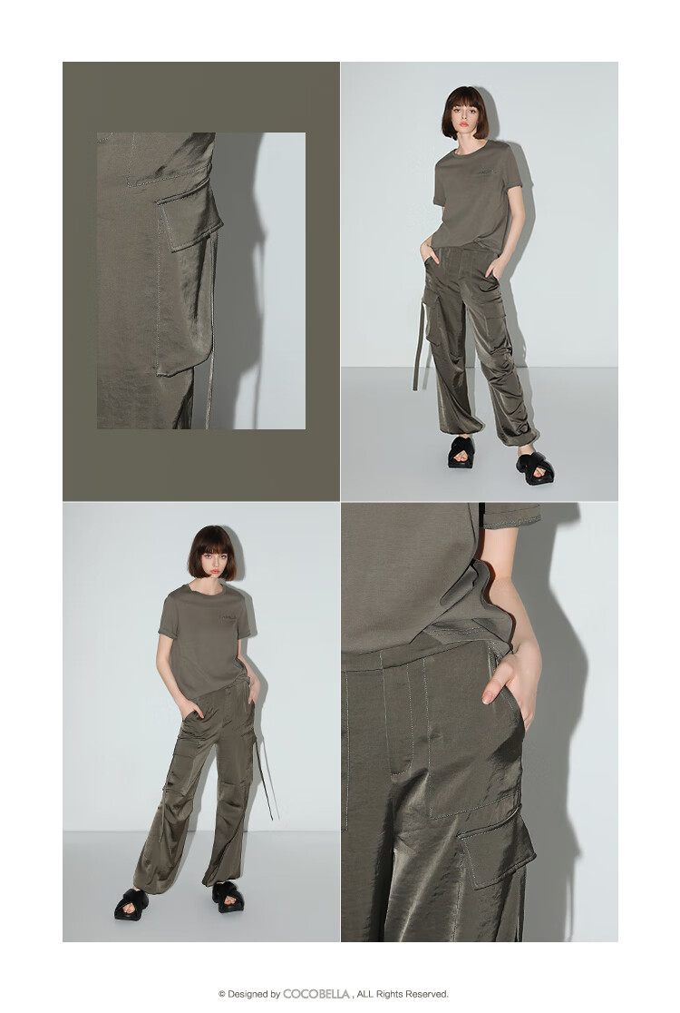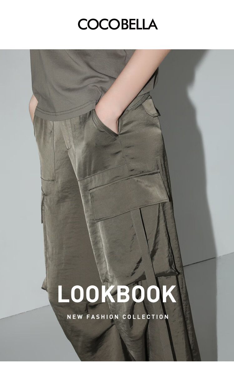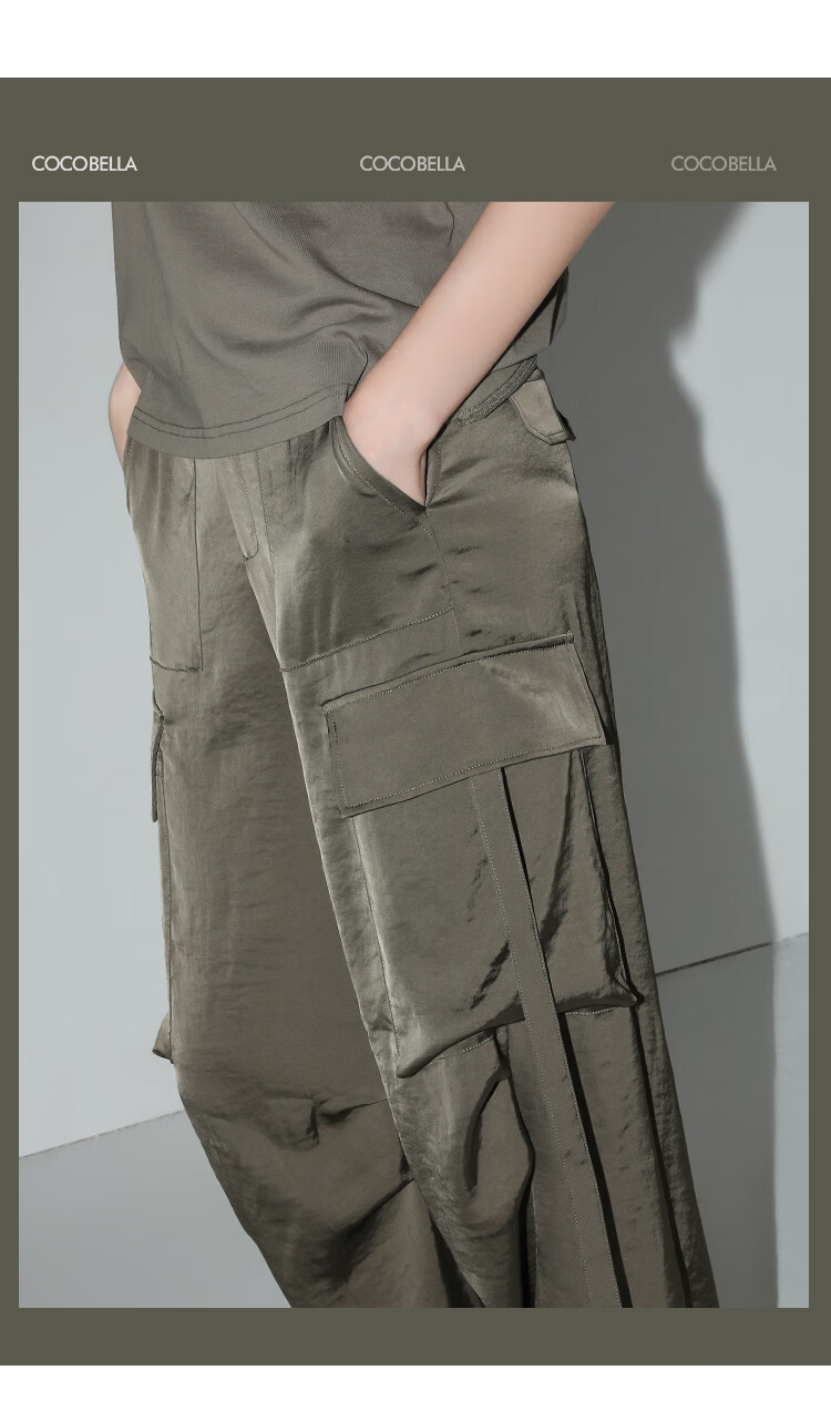 【秒杀】COCOBELLA静奢风丝光缎面垂坠休闲裤早秋大口袋工装裤PA3042