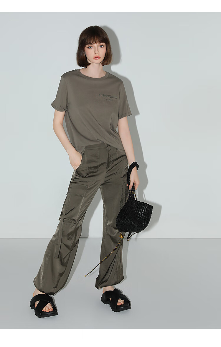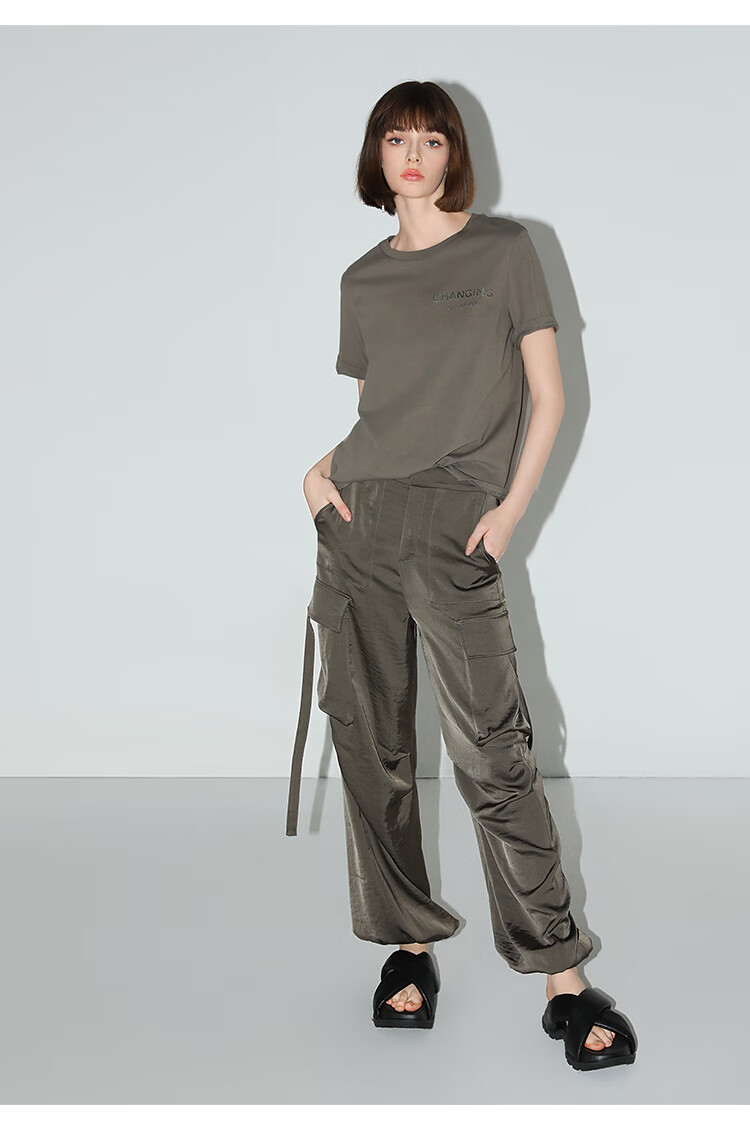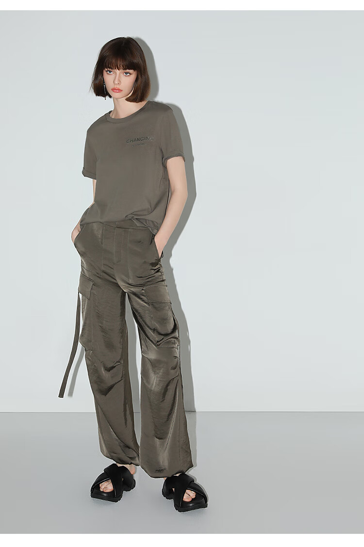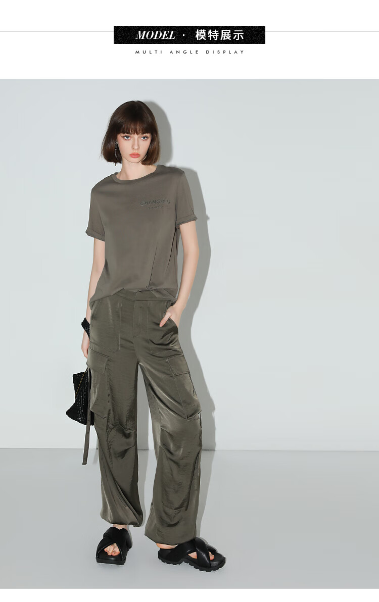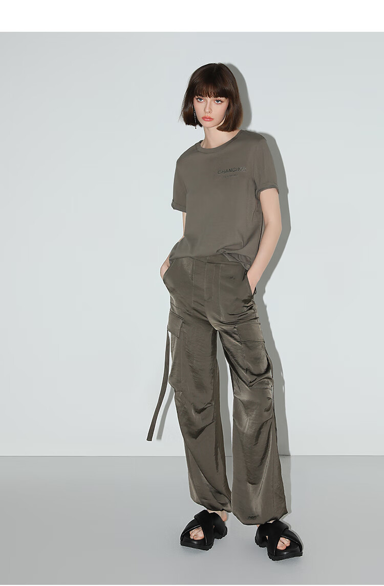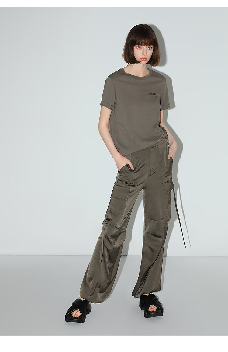 【秒杀】COCOBELLA静奢风丝光缎面垂坠休闲裤早秋大口袋工装裤PA3042
