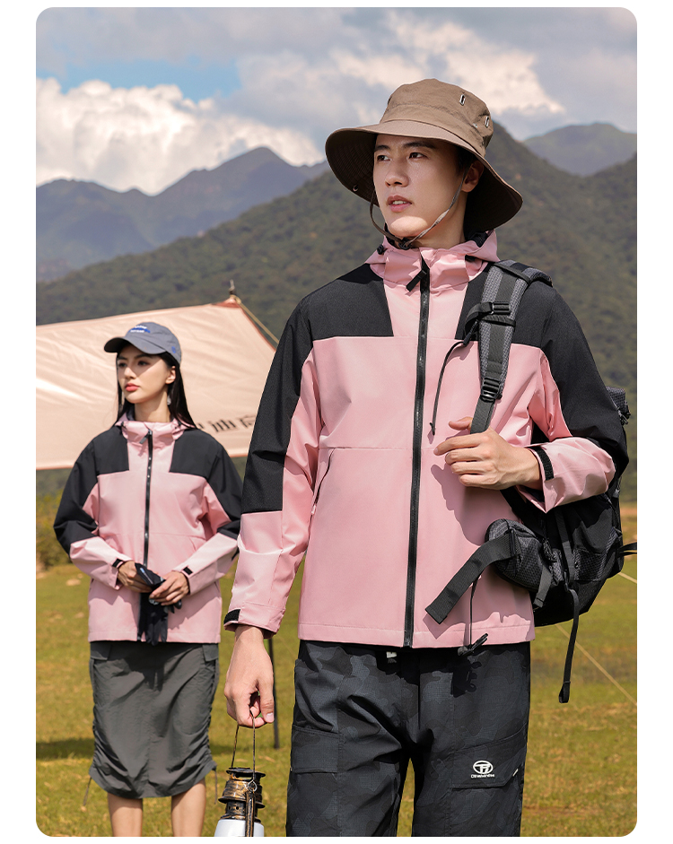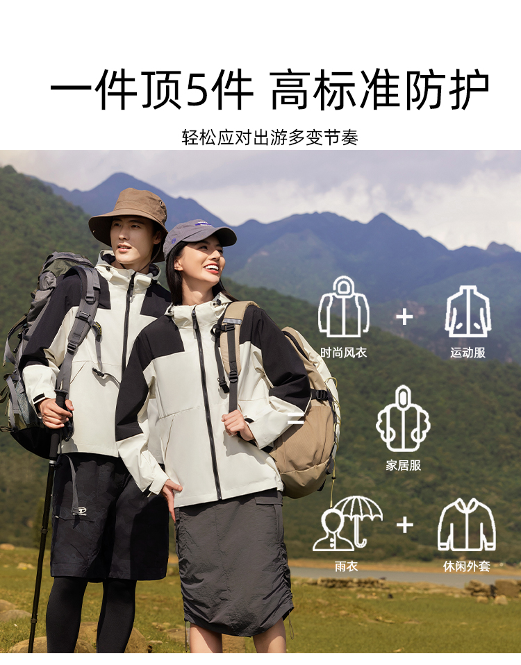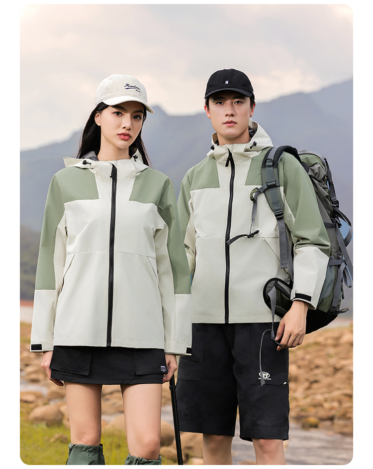 【亲测好穿!】出行必备 三防拼色冲锋衣 男女同款 黑科技防水防污防油 时尚百搭 防风保暖 多色可选 M-4XL 200斤以内能穿