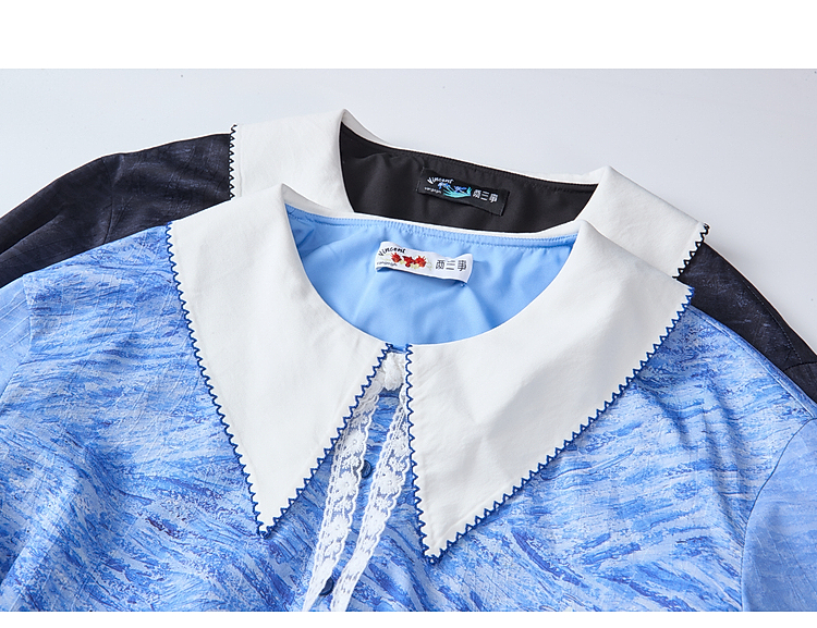 两三事梵高文艺春日序言2025春季新款蕾丝拼接荷叶边领绑带上衣女S25CLS342