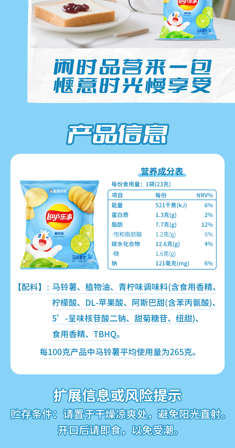 蜜雪冰城 乐事薯片-青柠味 真薯原切 薄脆美味
