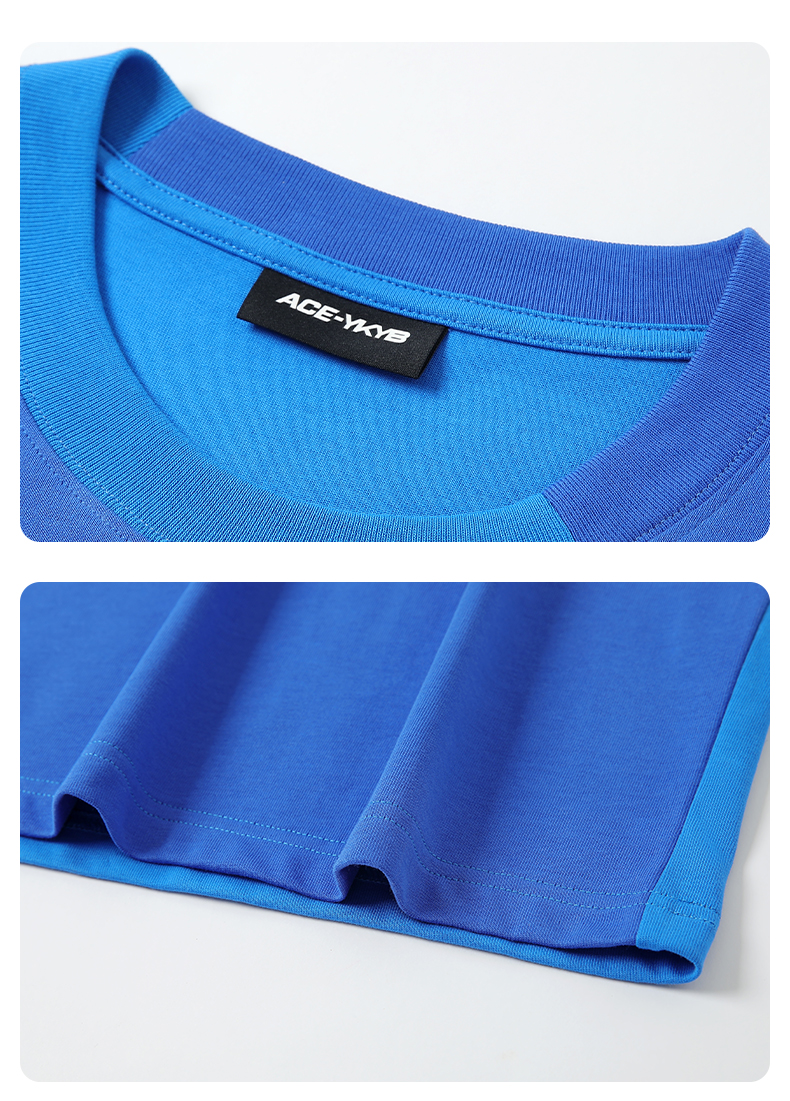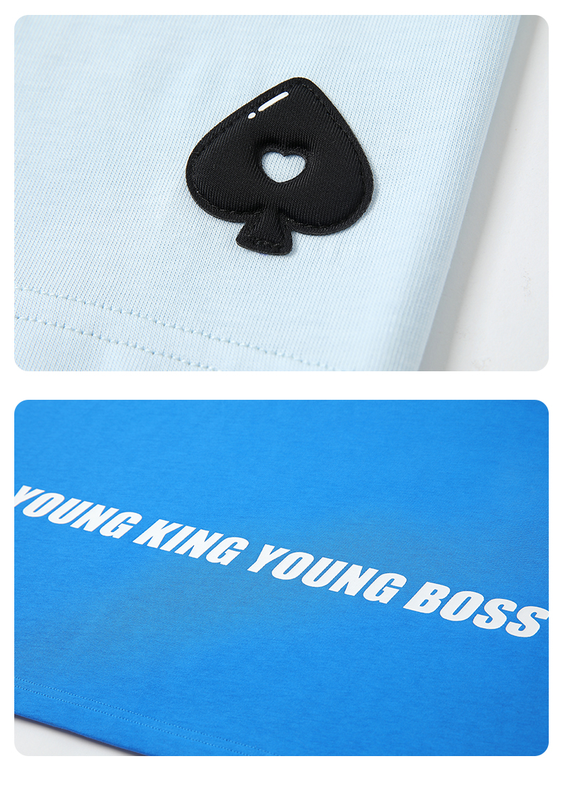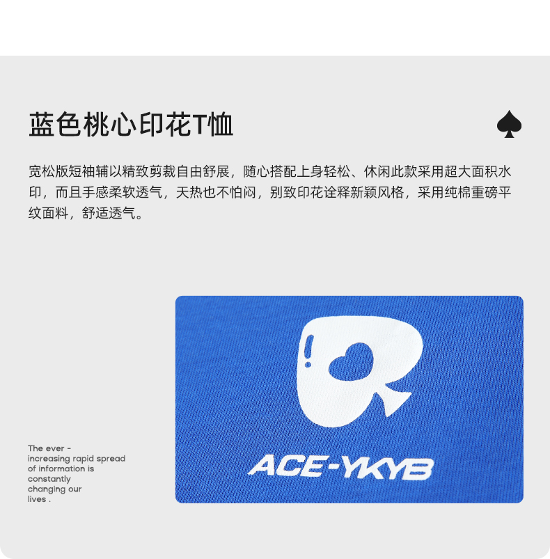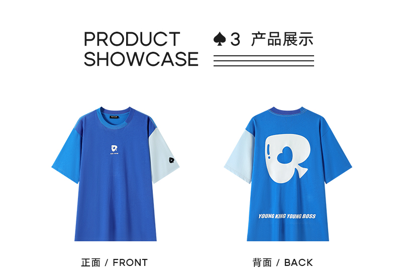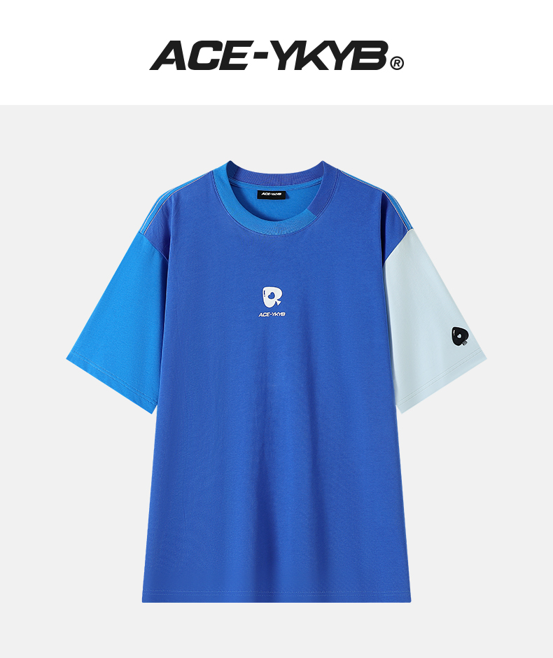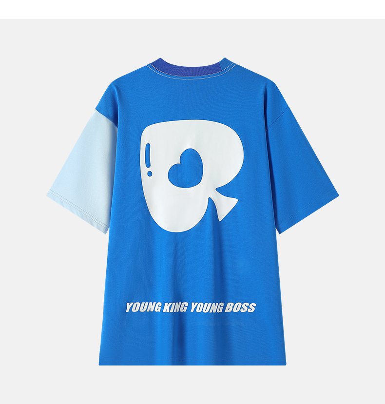 YKYB 23SS黑桃爱心蓝色拼接短袖T恤复古配色宽松廓形圆领上衣潮