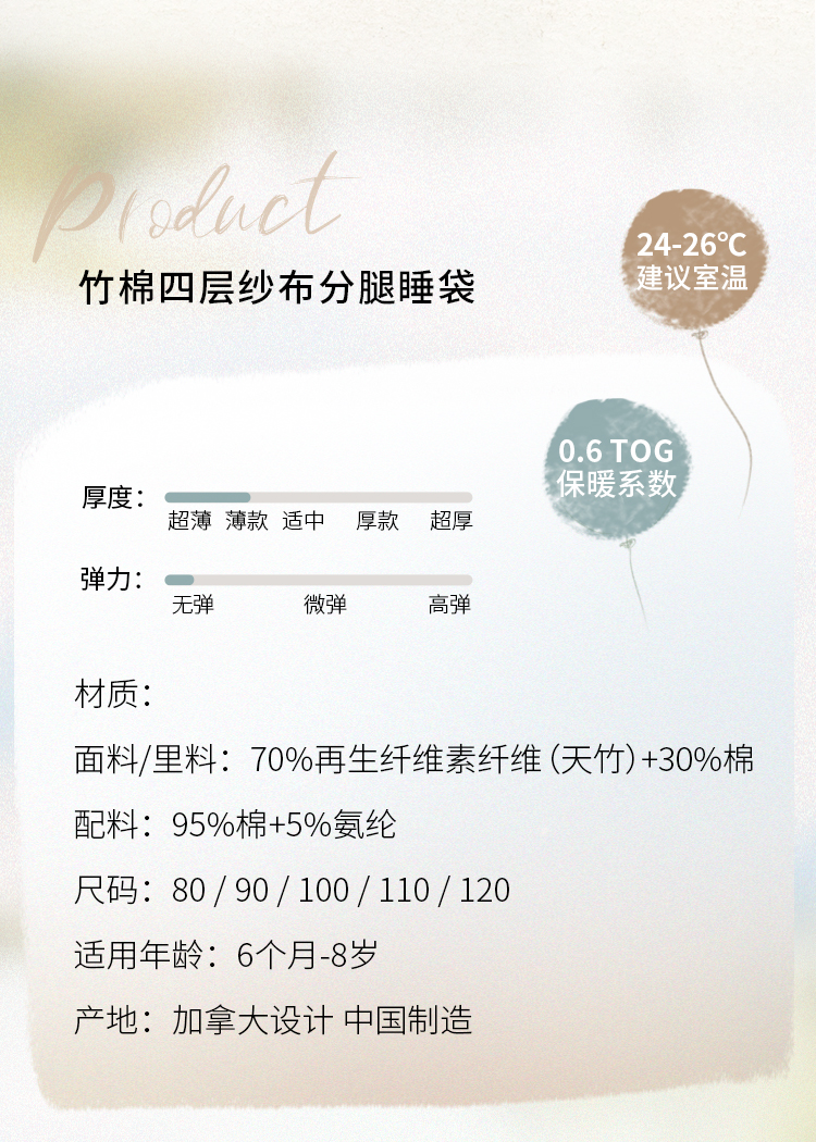 【Nest Designs】竹棉四层纱布分腿睡袋 (建议室温24-26℃)