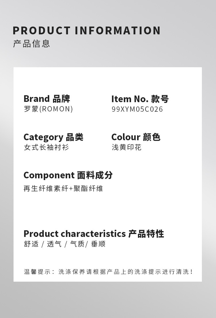 【精美印花】罗蒙四季款女式长袖衬衫舒适精致百搭休闲商务衬衫女