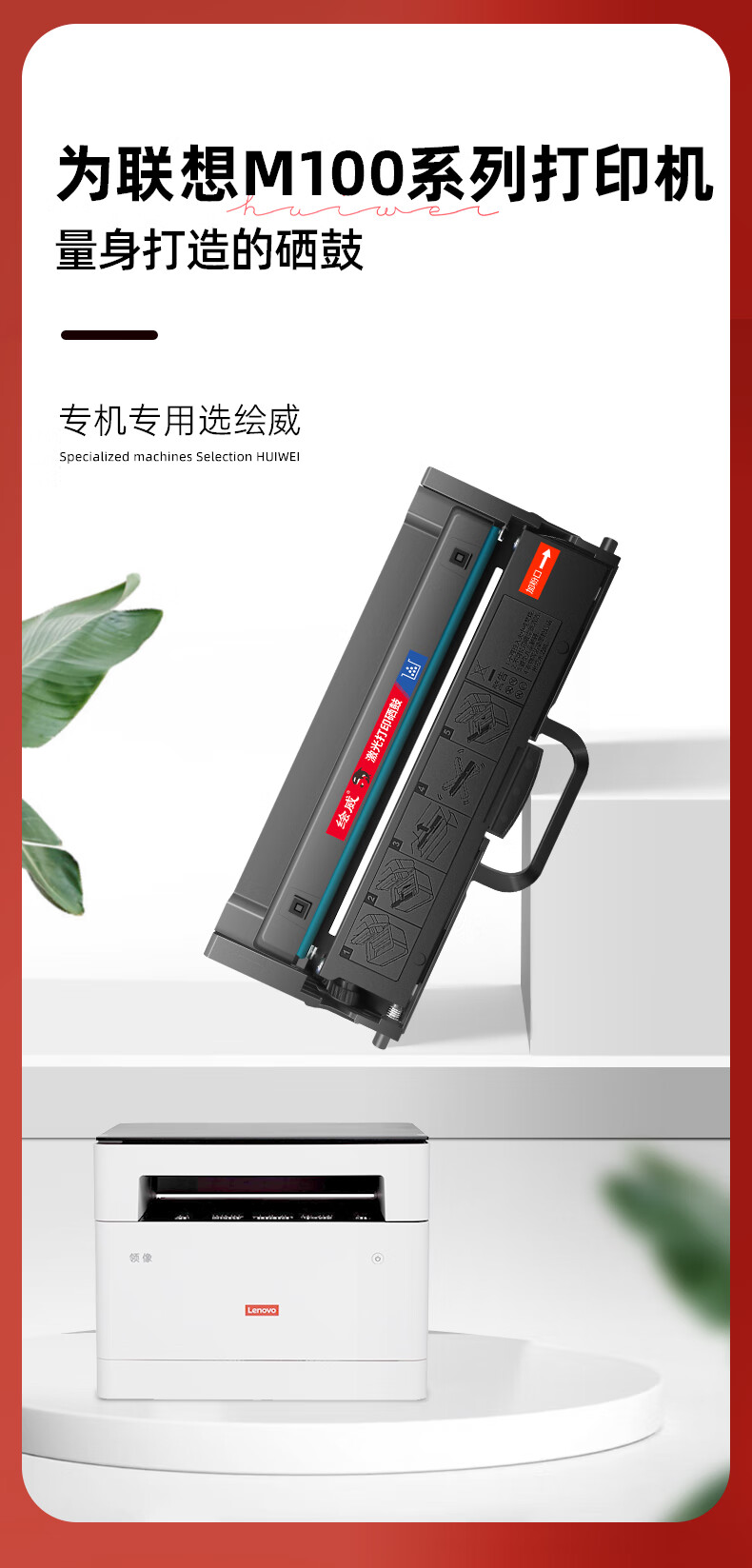 绘威m100粉盒适用联想领像m100w m100 m100D硒鼓m100打印机专用粉盒碳粉 墨盒 墨粉