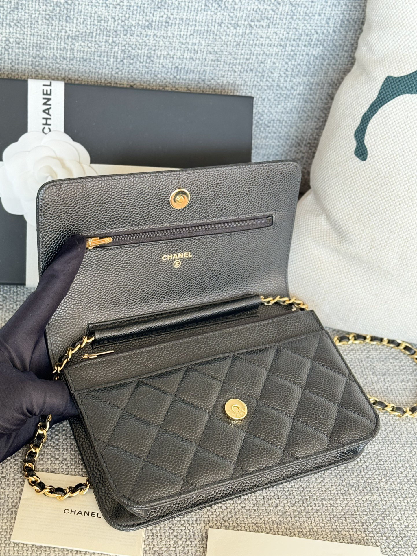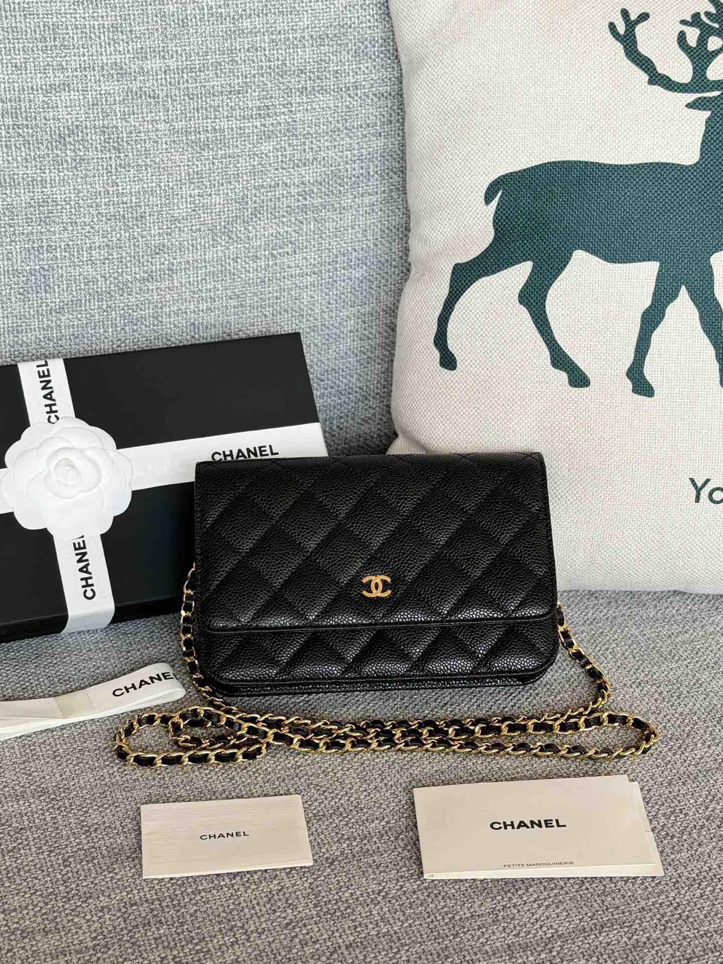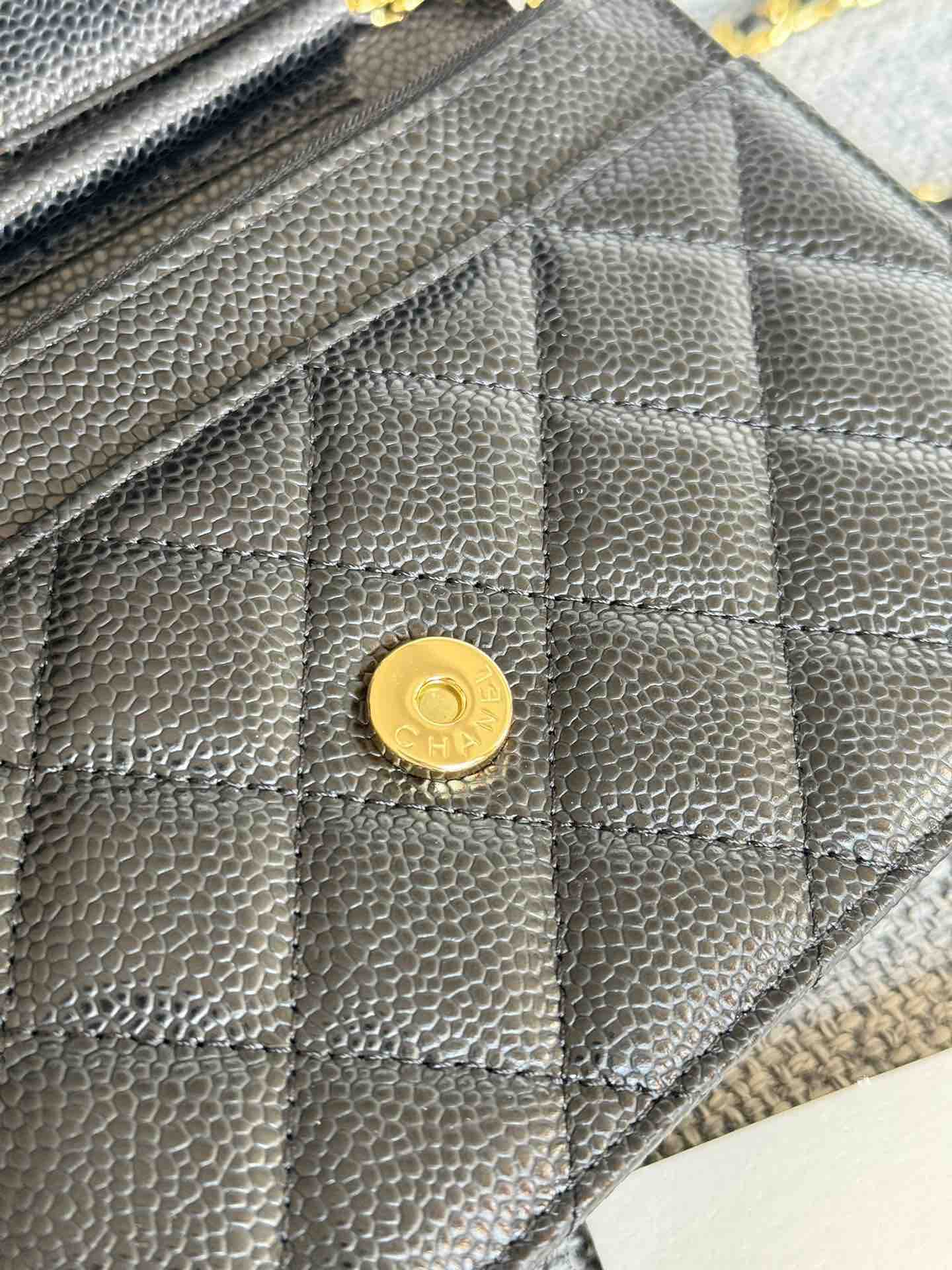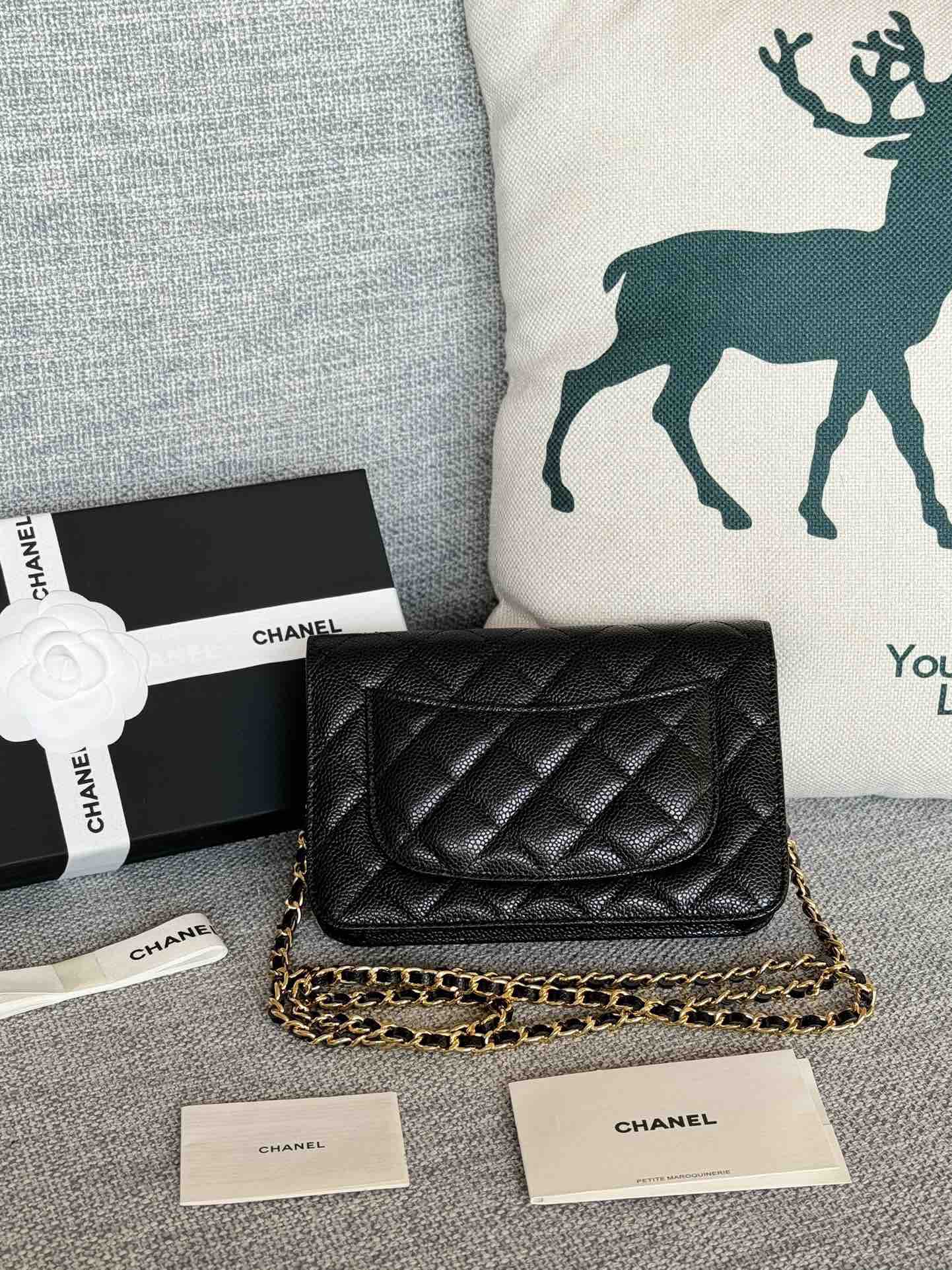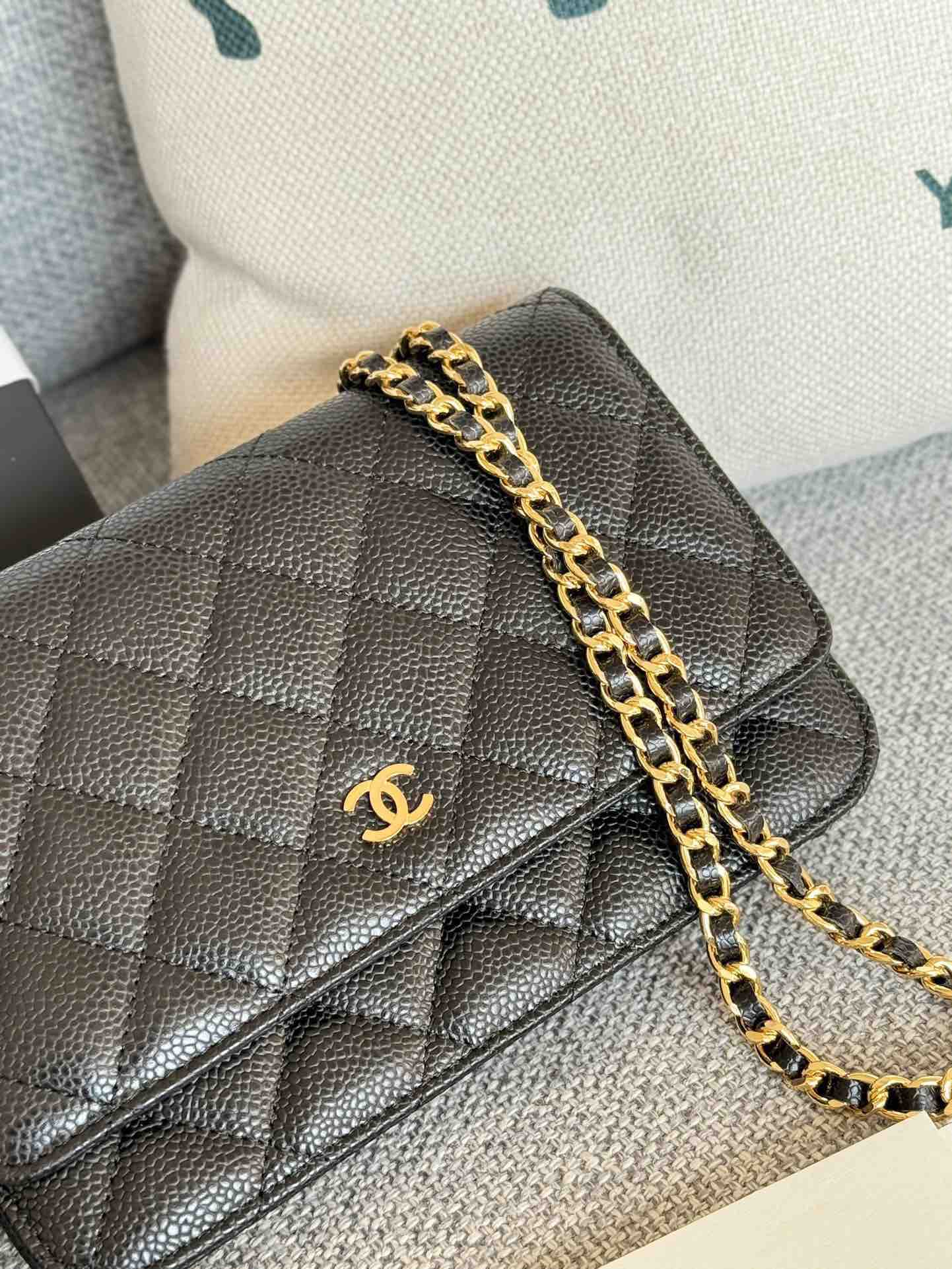 香奈儿woc链条包🉐️牛皮-黑色金扣(粗球纹)