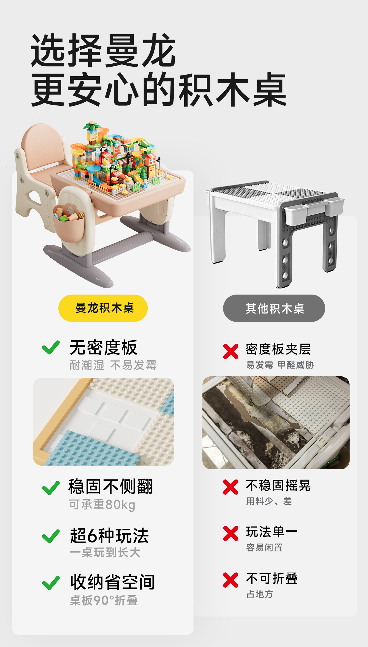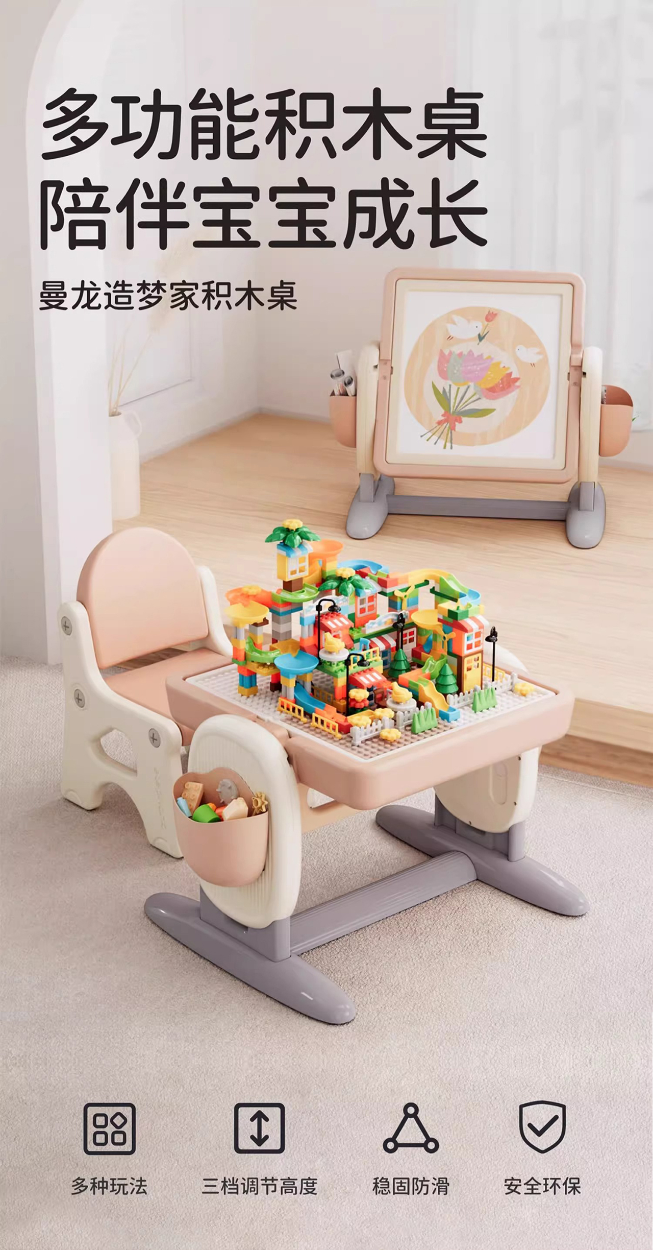 【春日趣玩FUN】曼龙mloong儿童多功能积木桌大颗粒积木宝宝游戏室内升降男孩周岁礼物