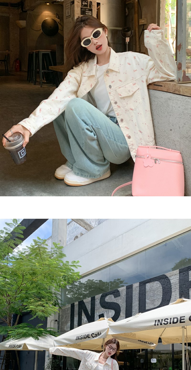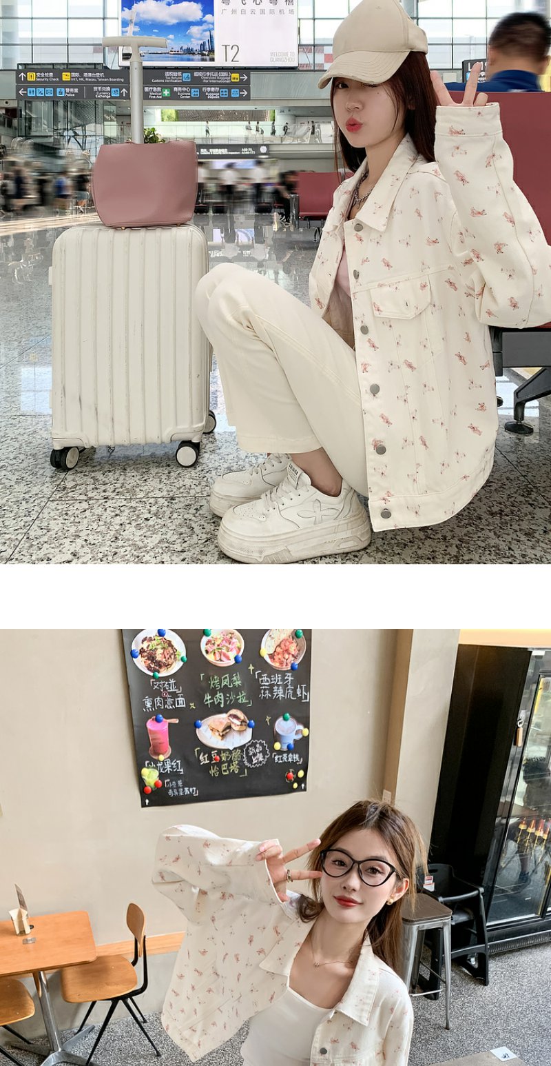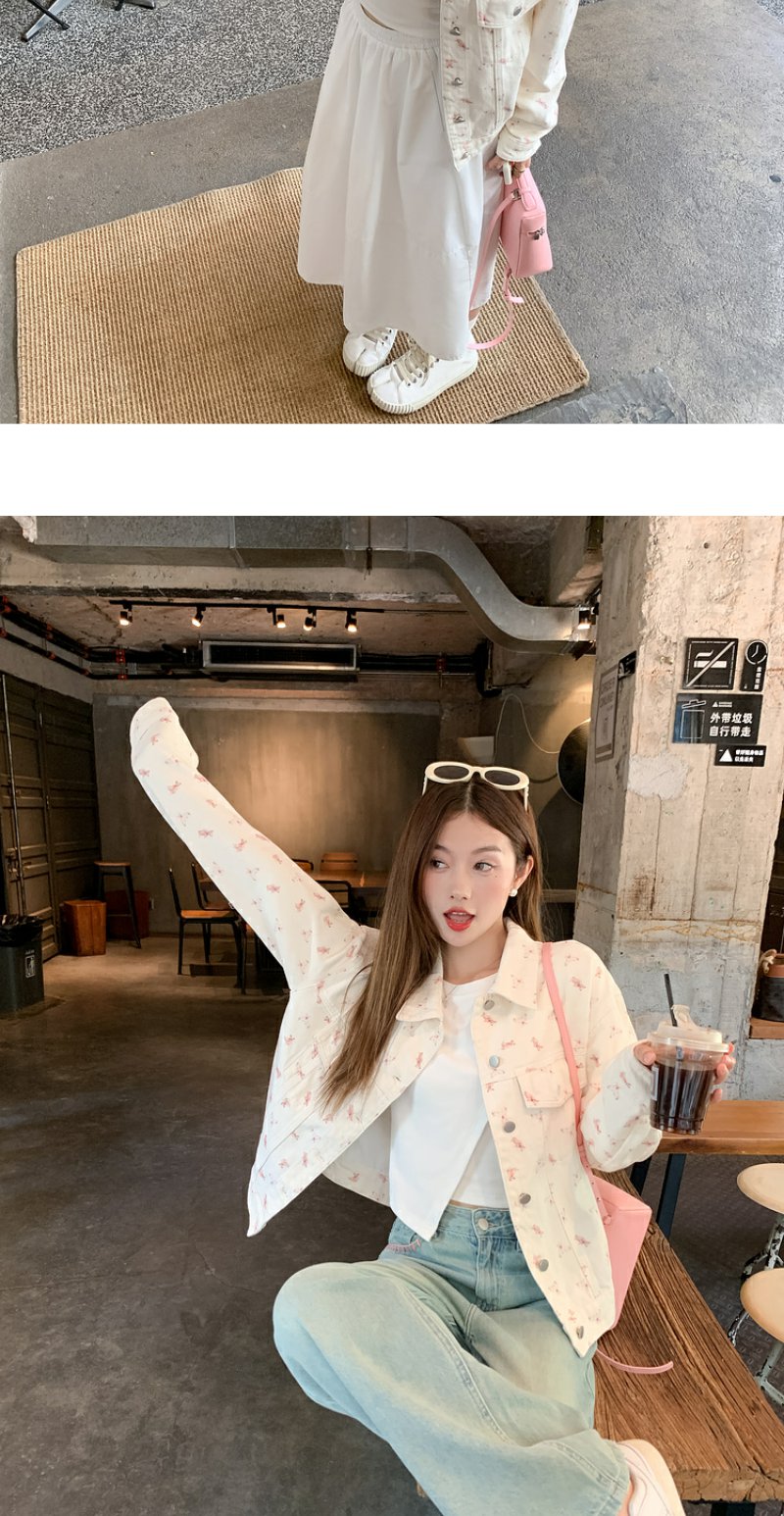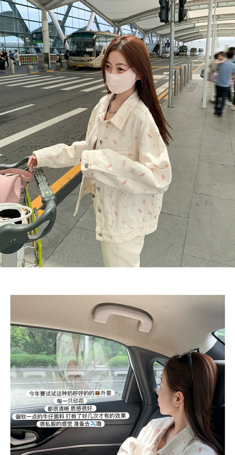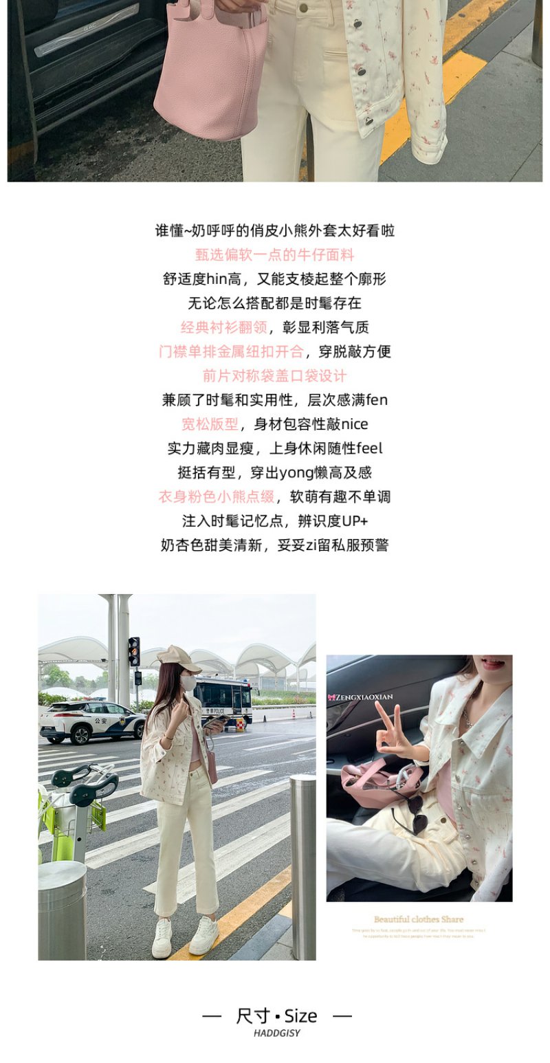 <曾小咸推荐>【甜美氛围】白色小熊印花牛仔外套