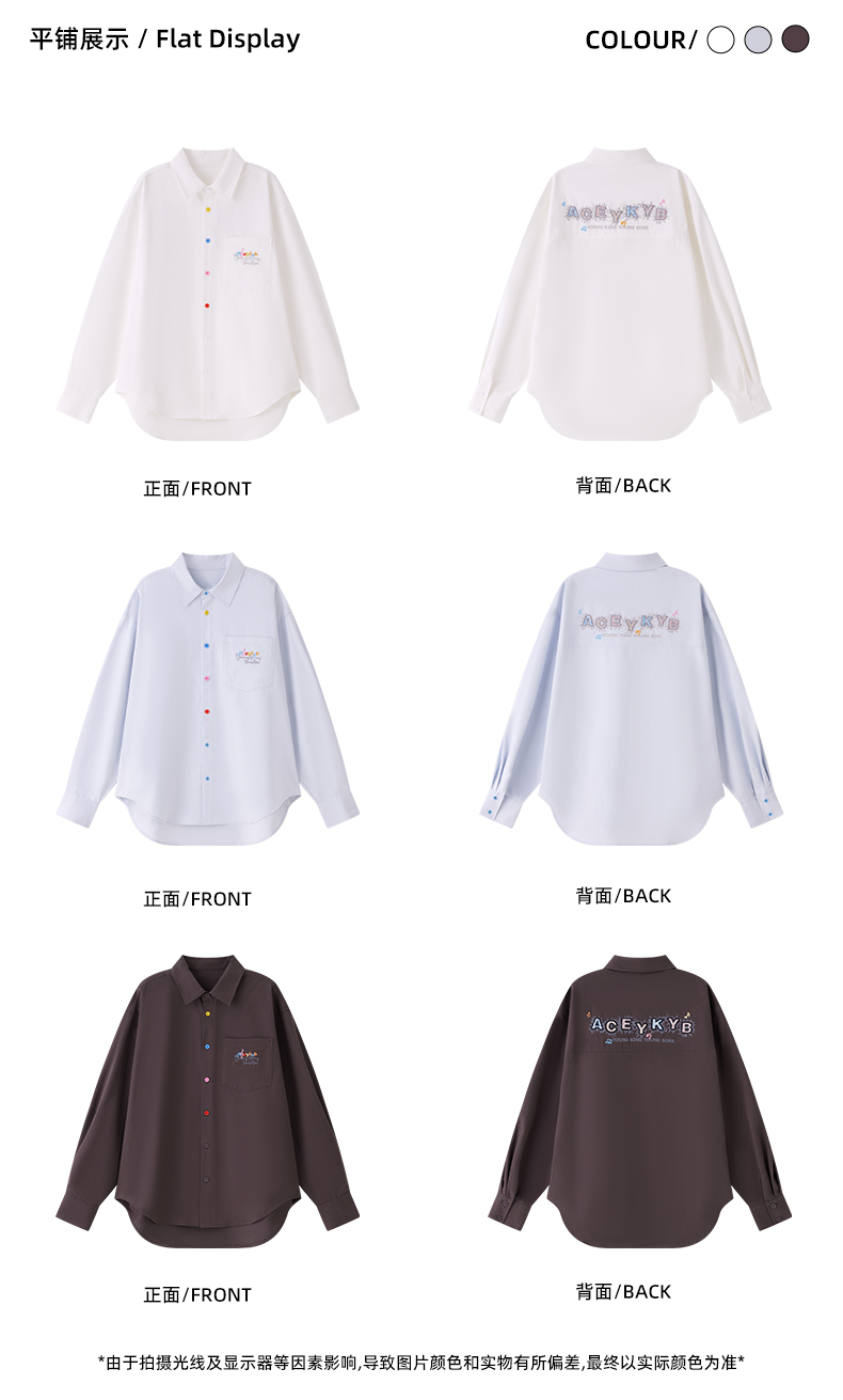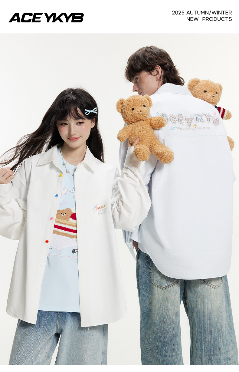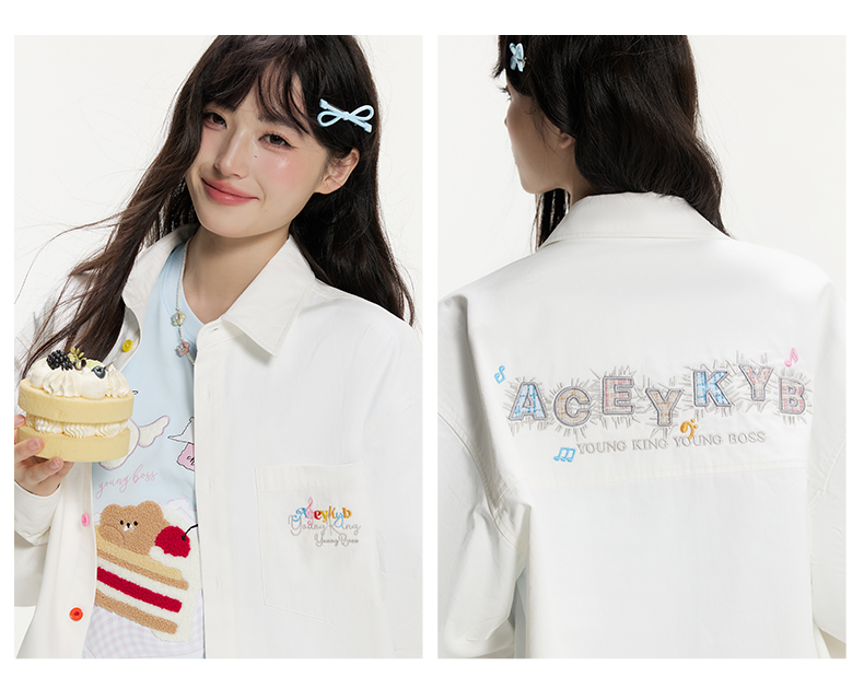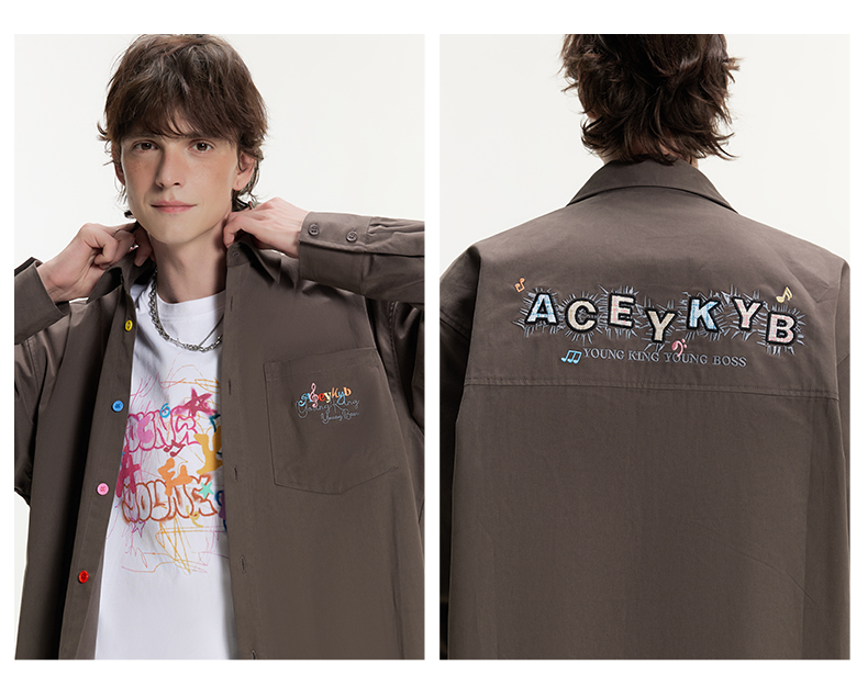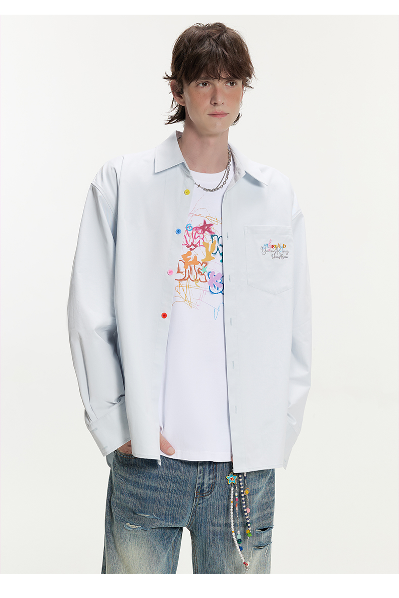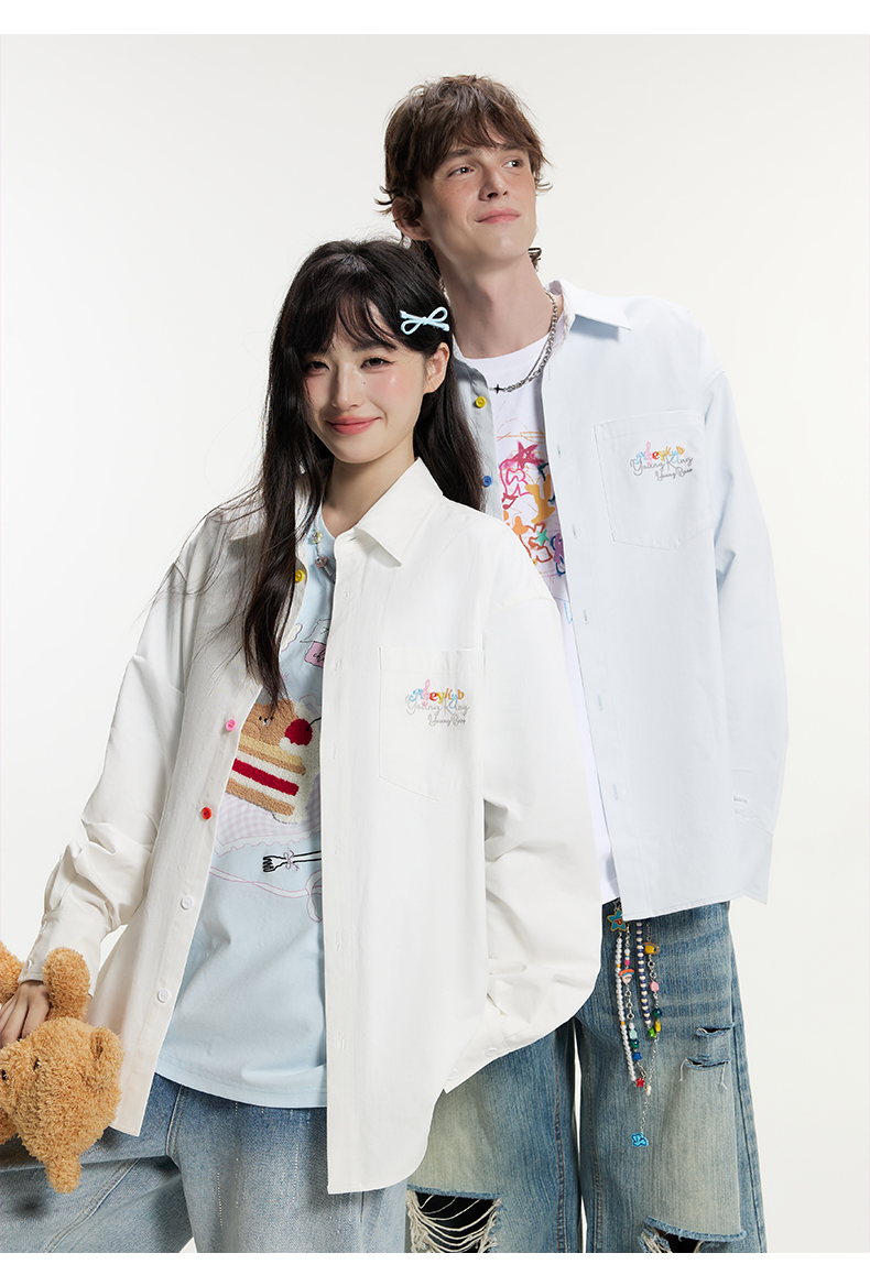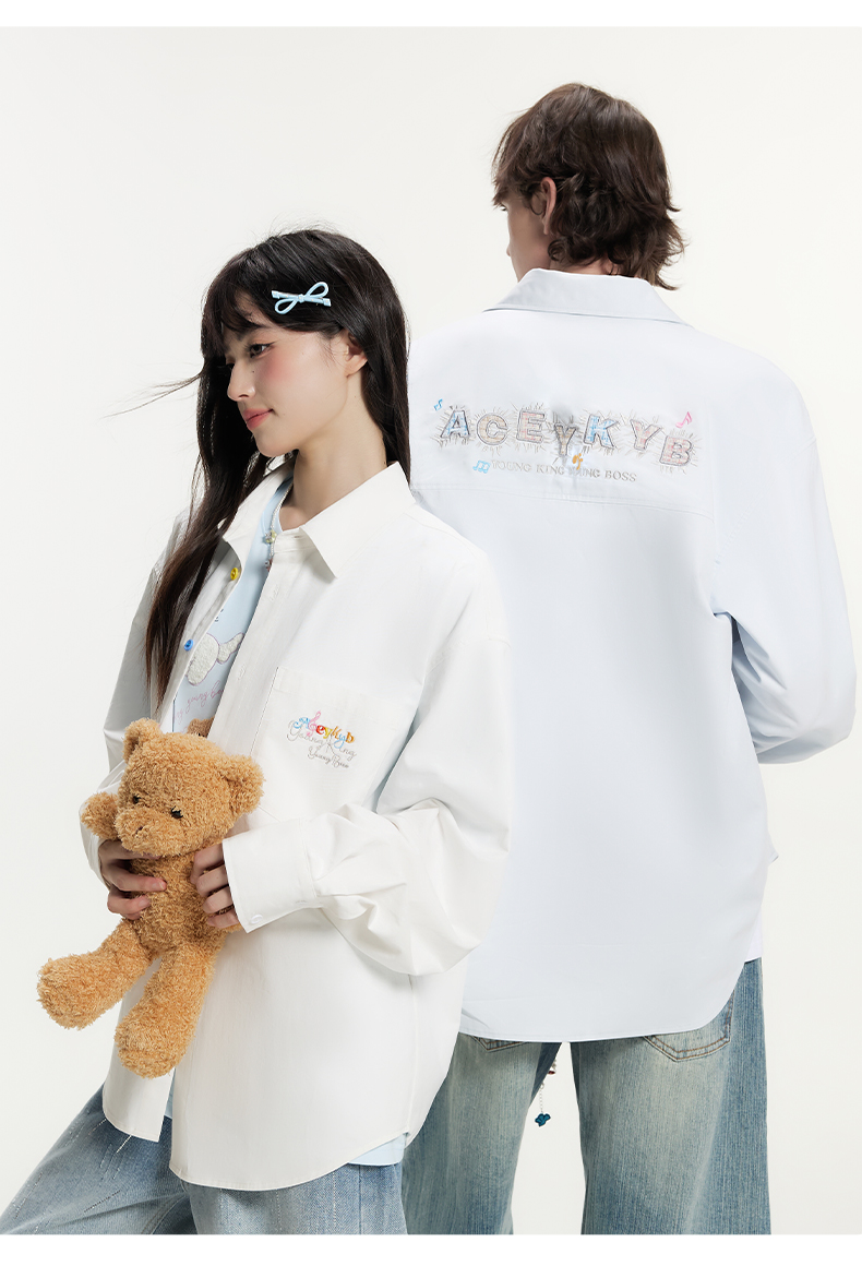 YKYB黄子韬 设计感小众多巴胺刺绣衬衫宽松百搭情侣长袖衬衣外套Y53NCS068