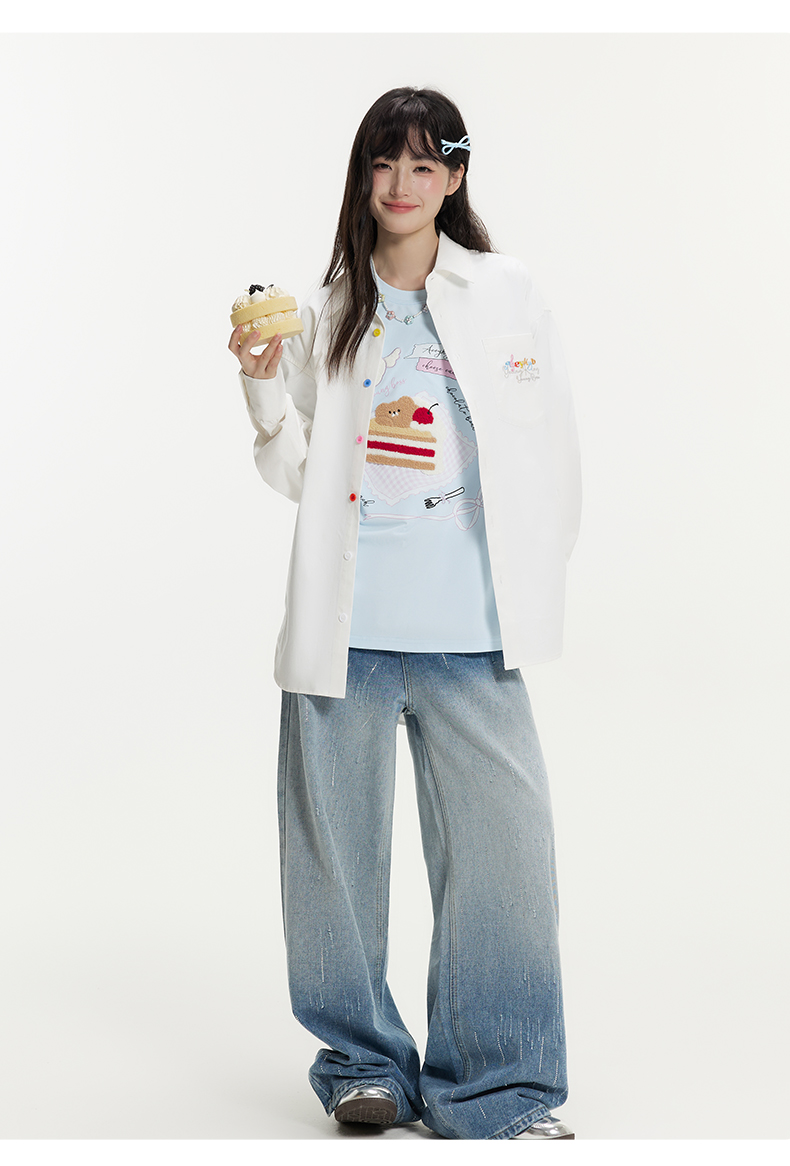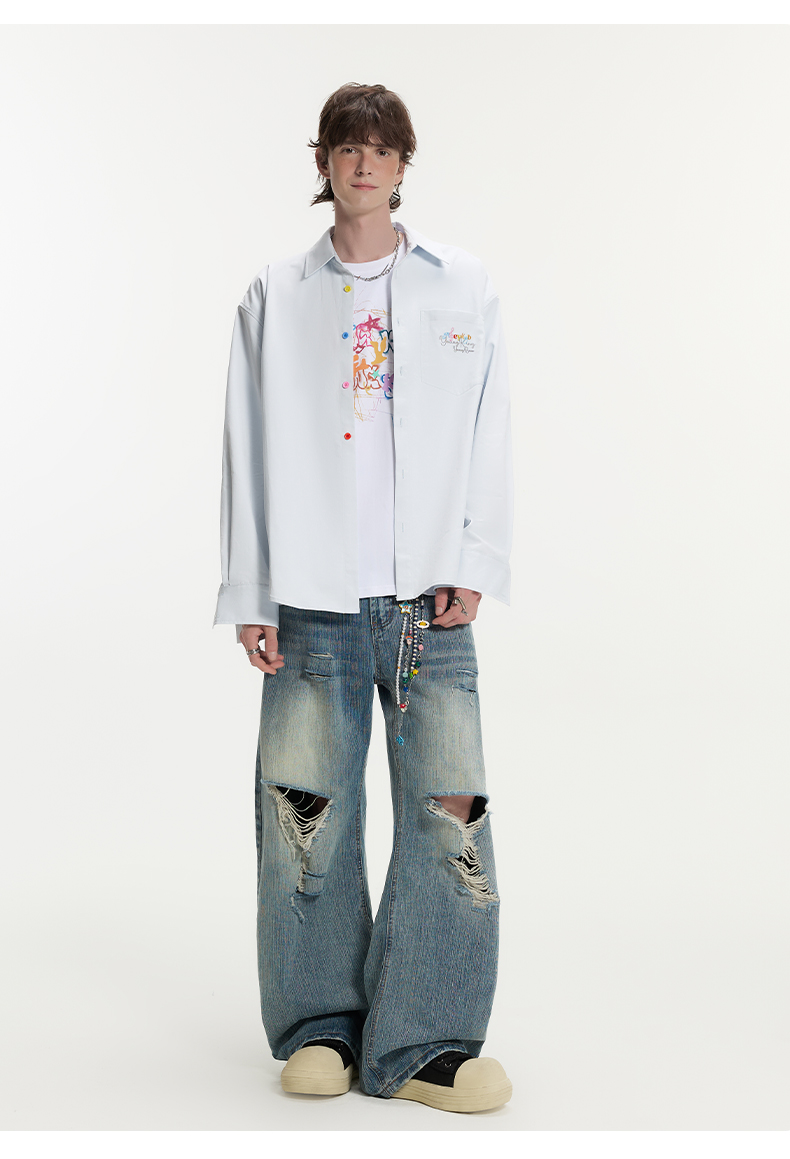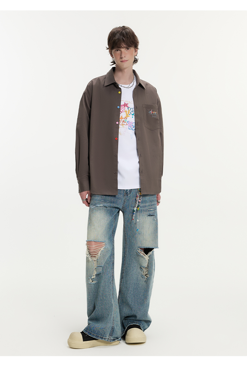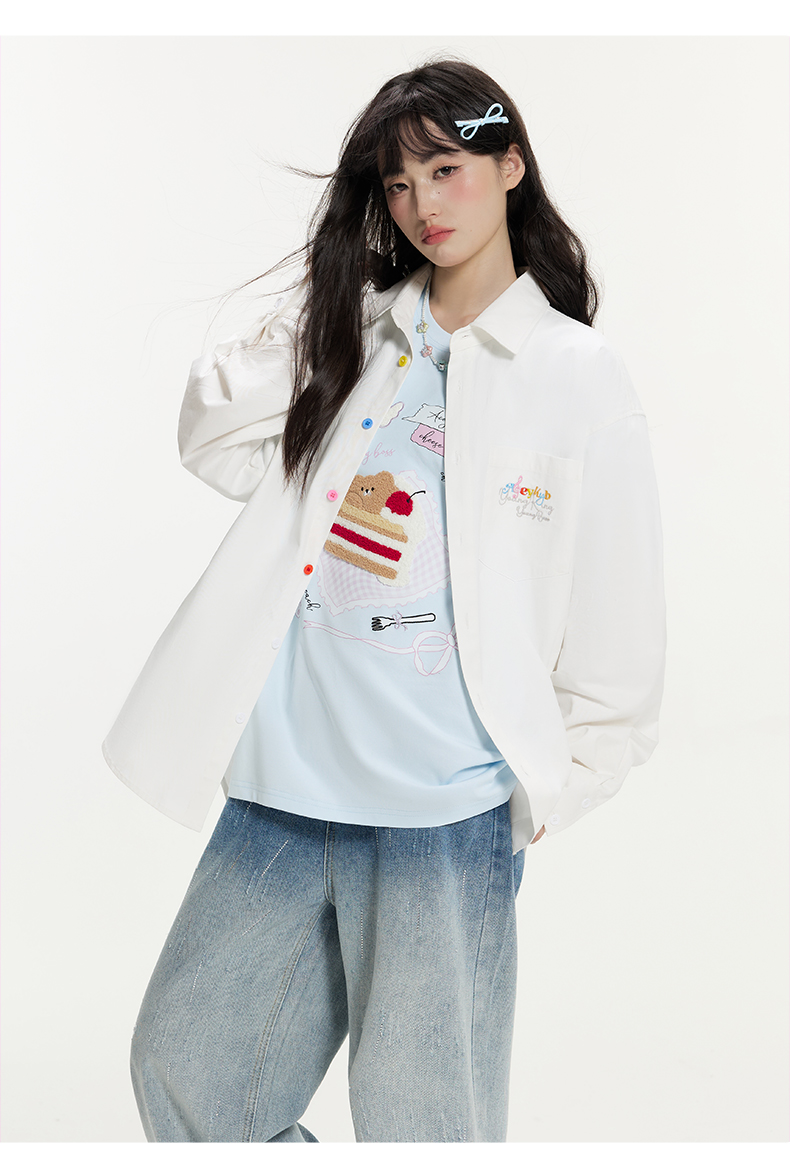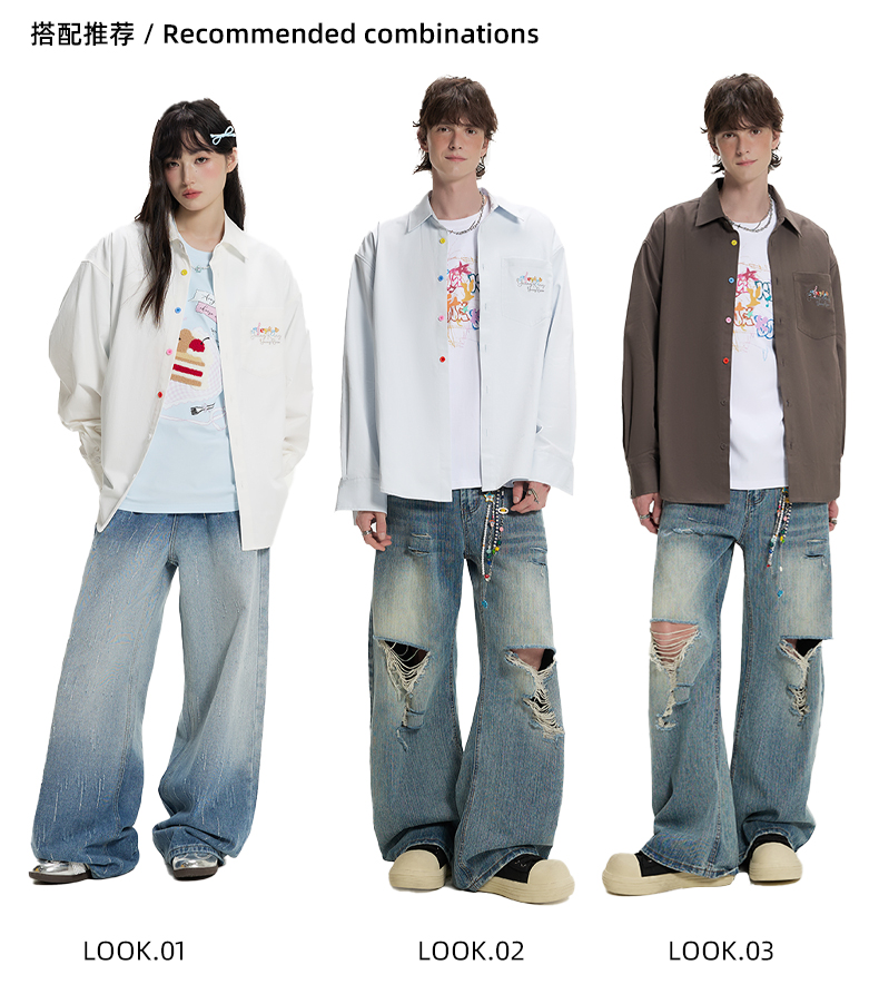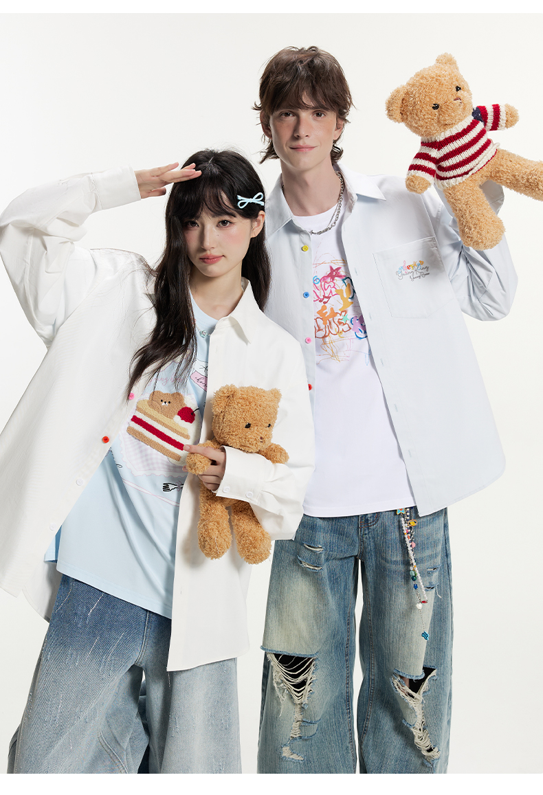 YKYB黄子韬 设计感小众多巴胺刺绣衬衫宽松百搭情侣长袖衬衣外套Y53NCS068