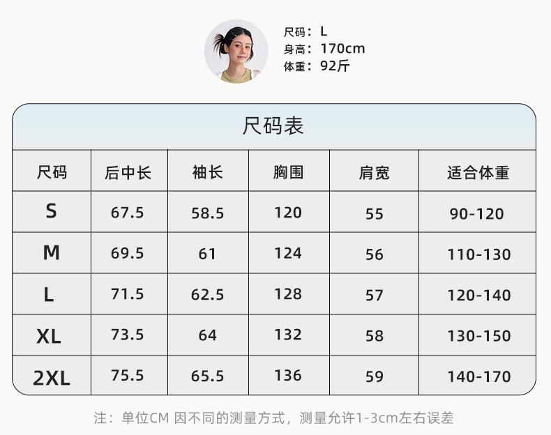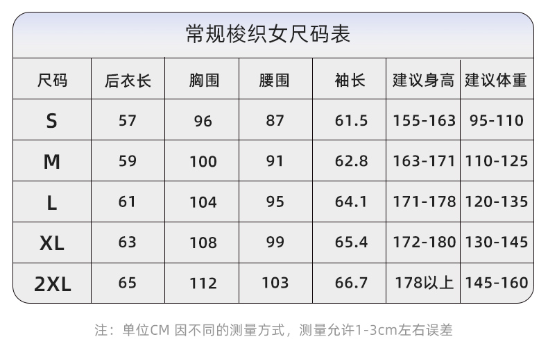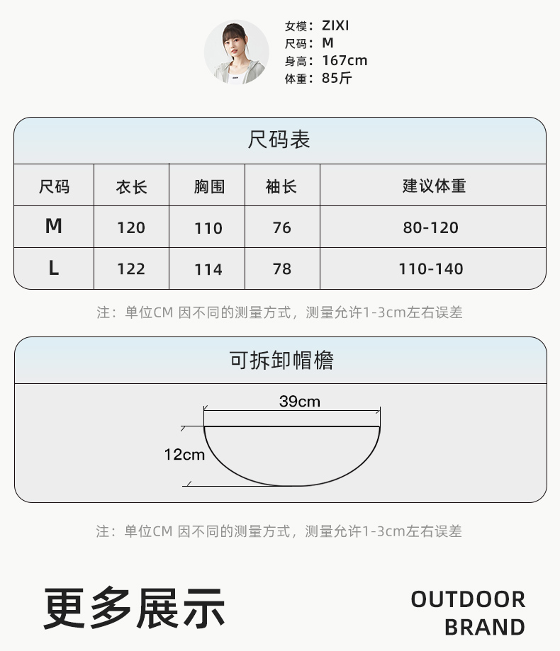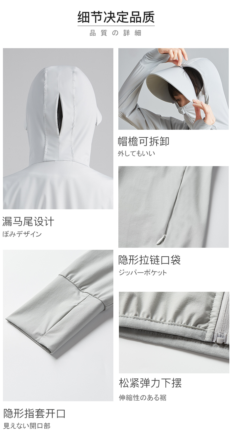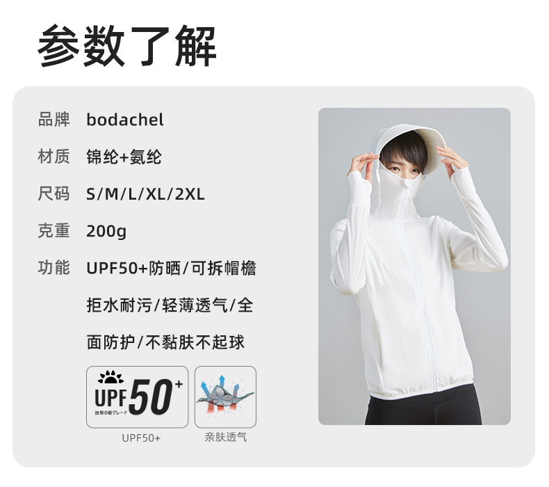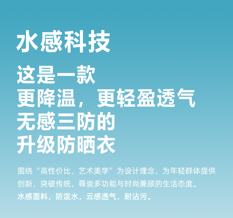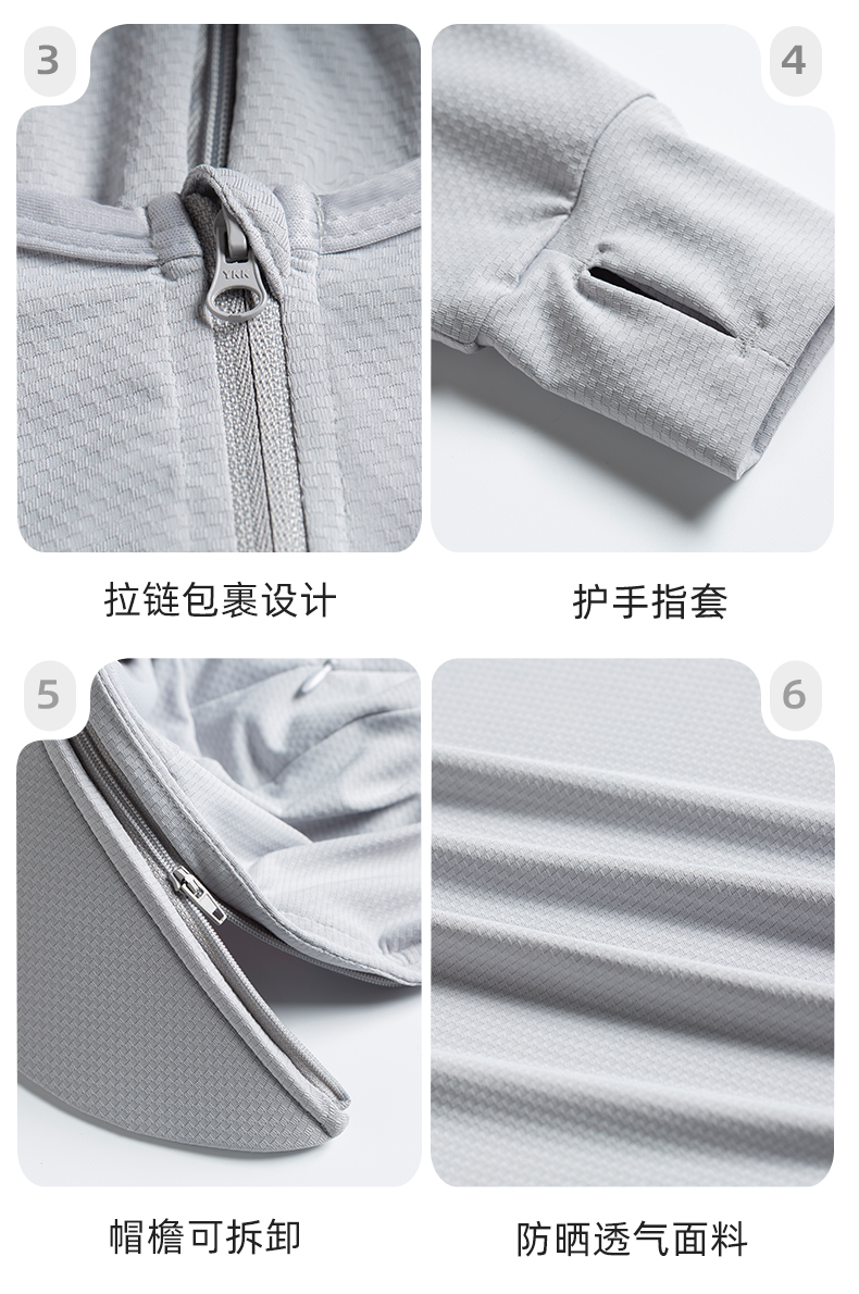 温馨提示:【防晒衣】不可机洗,深浅衣物请分开洗涤,避免互相沾染:不可漂白:不可干洗:手洗切忌用力揉搓,硬物强刷,避免破坏纤维结构。