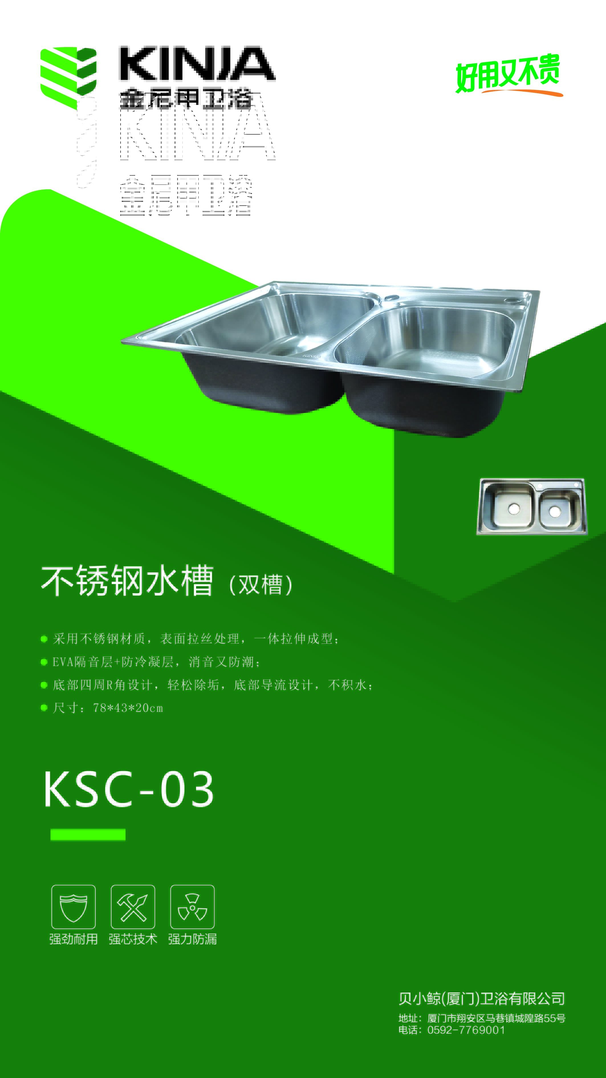 双槽不锈钢水槽/KSC-03/78*43cm/SUS201拉丝