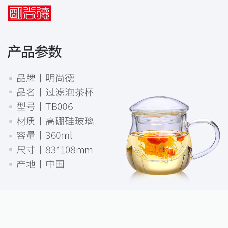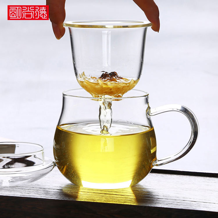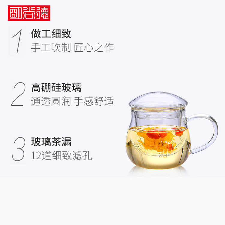 高硼硅玻璃耐高温茶水分离泡茶杯子办公家用过滤茶杯三件杯TB006璃匠泡茶杯360ml