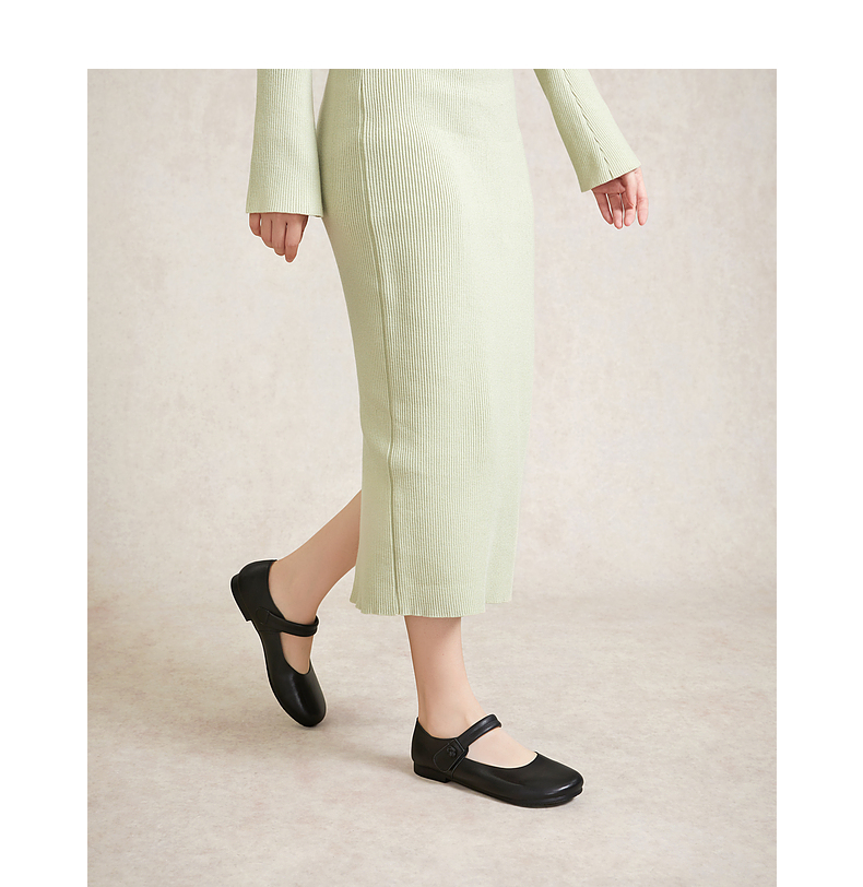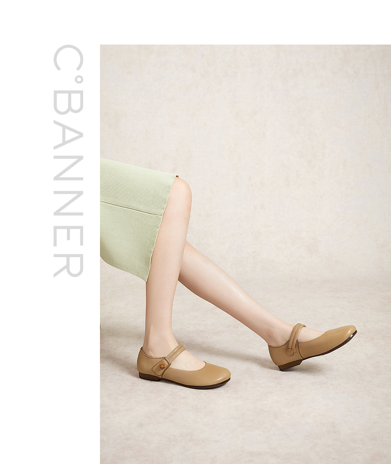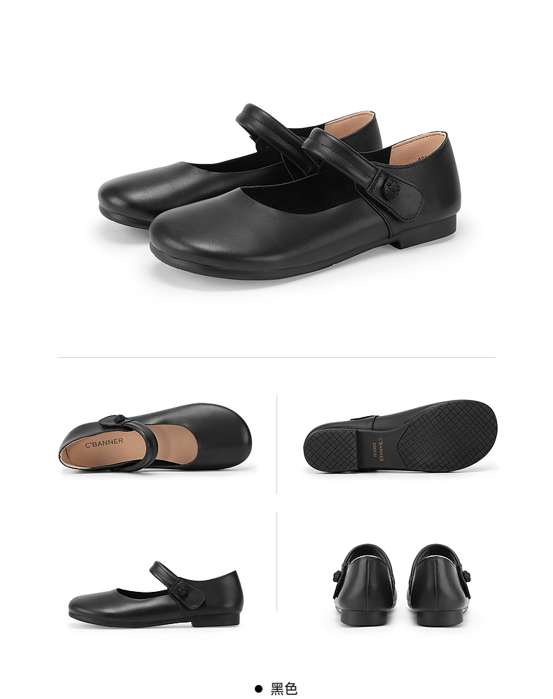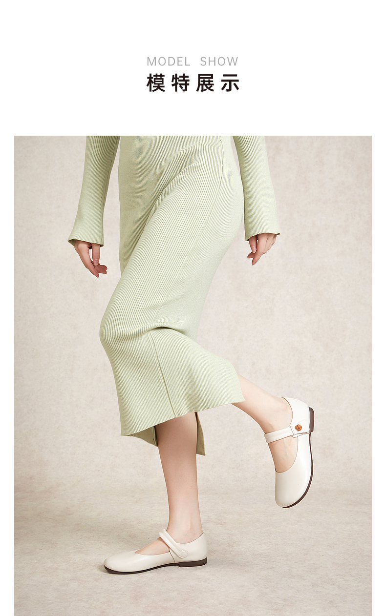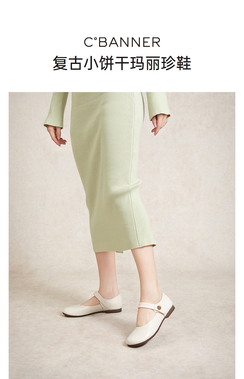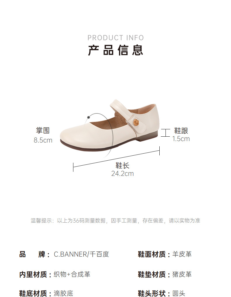 千百度羊皮玛丽珍鞋秋季小香风单鞋女平底鞋A24400989