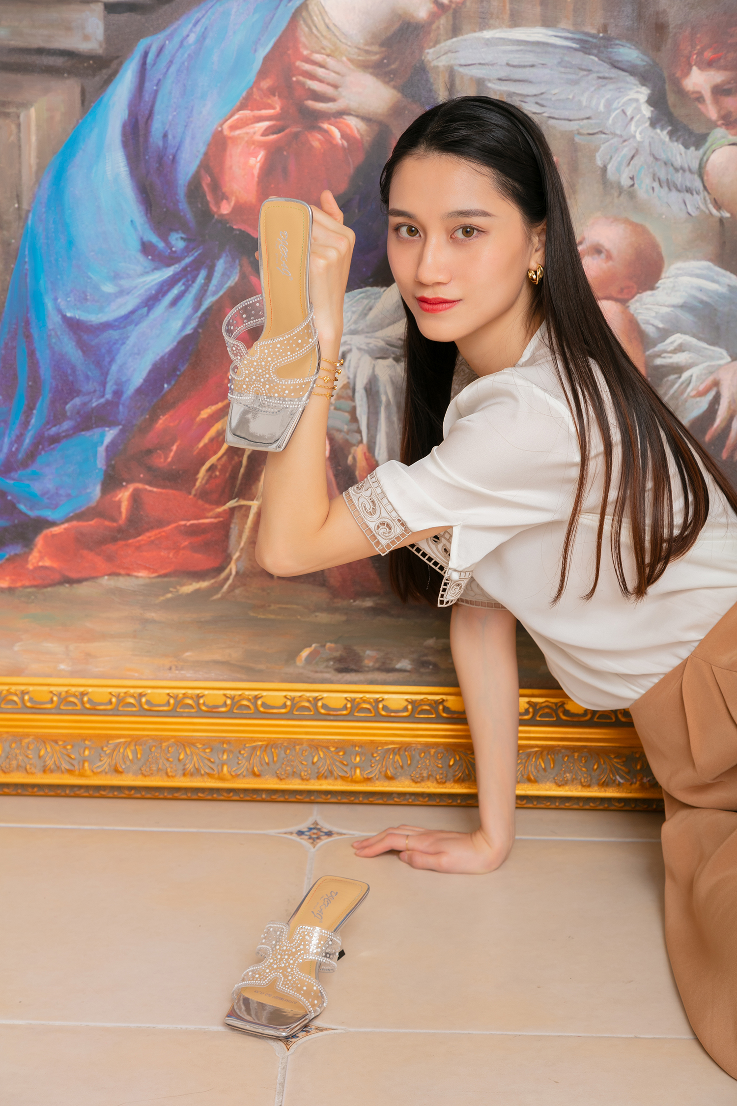 豪麟名鞋奥莱迪嘉女装PVC时尚凉拖DJYYA11WL027香槟色 原价1660元
