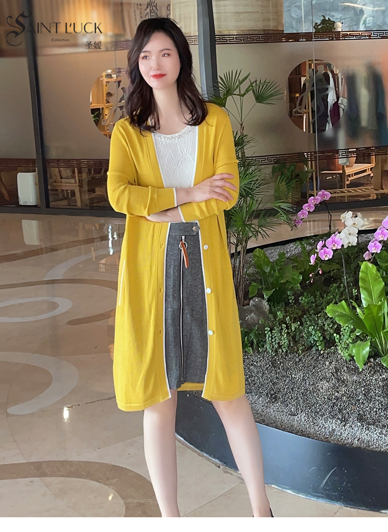 SAINT L’UCK/圣媛女装秋季新款中长款纯色针织衫,开衫SA320M01