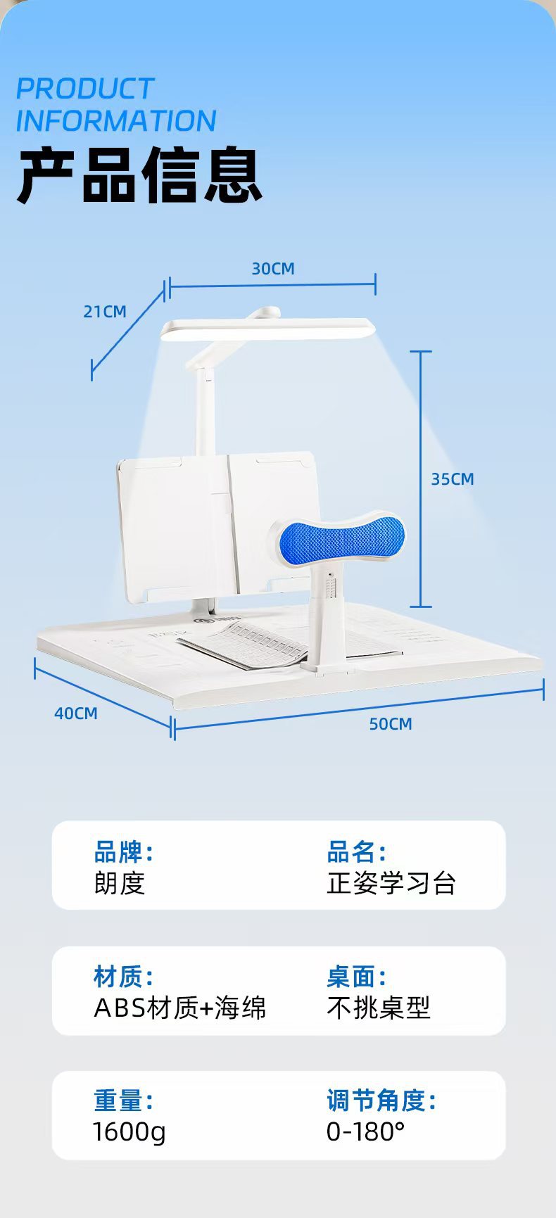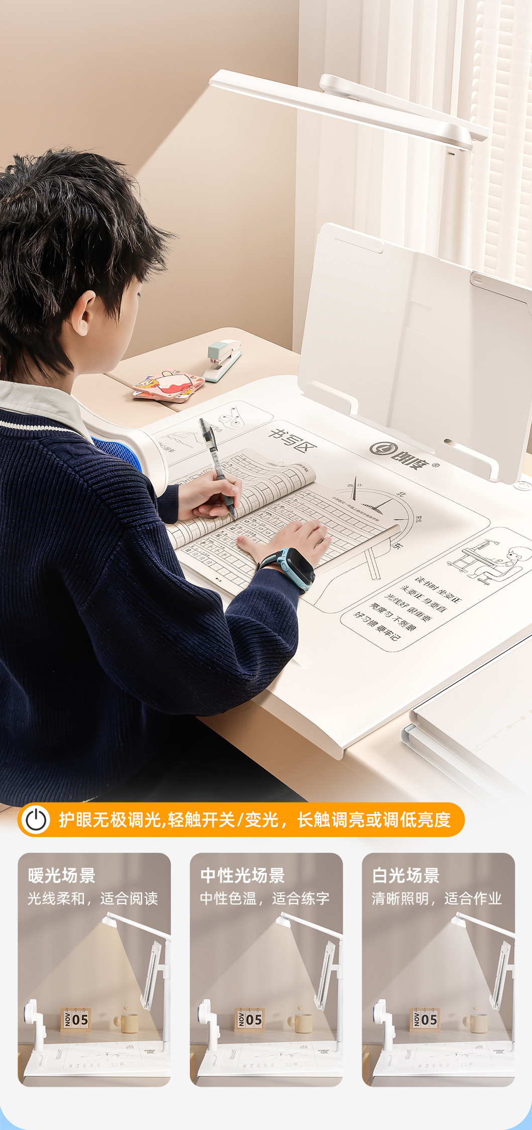 [五维全护系统!护眼台灯 】坐姿矫正器 儿童写字姿势防驼背 小学生视力保护器桌面款