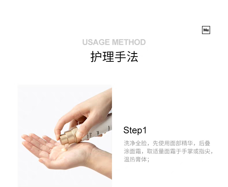 Step1:洗完脸先涂精华,再取一泵面霜,